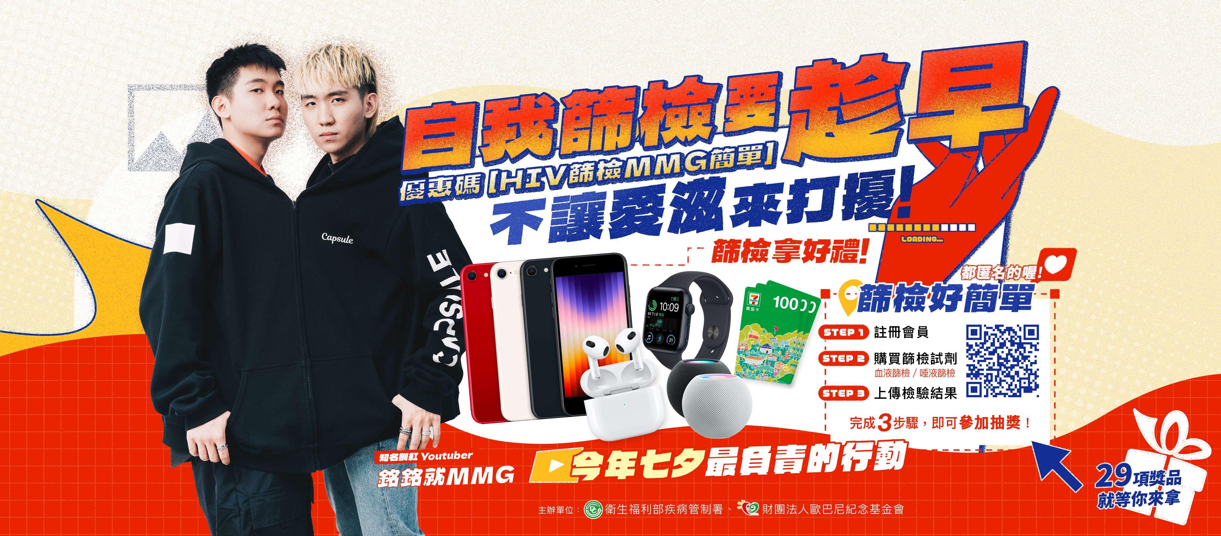 1.衛生福利部疾病管制署與財團法人歐巴尼紀念基金會 共同舉辦112年「自我篩檢要趁早,不讓愛滋來打擾」愛滋防治影音媒體平臺宣導活動。
