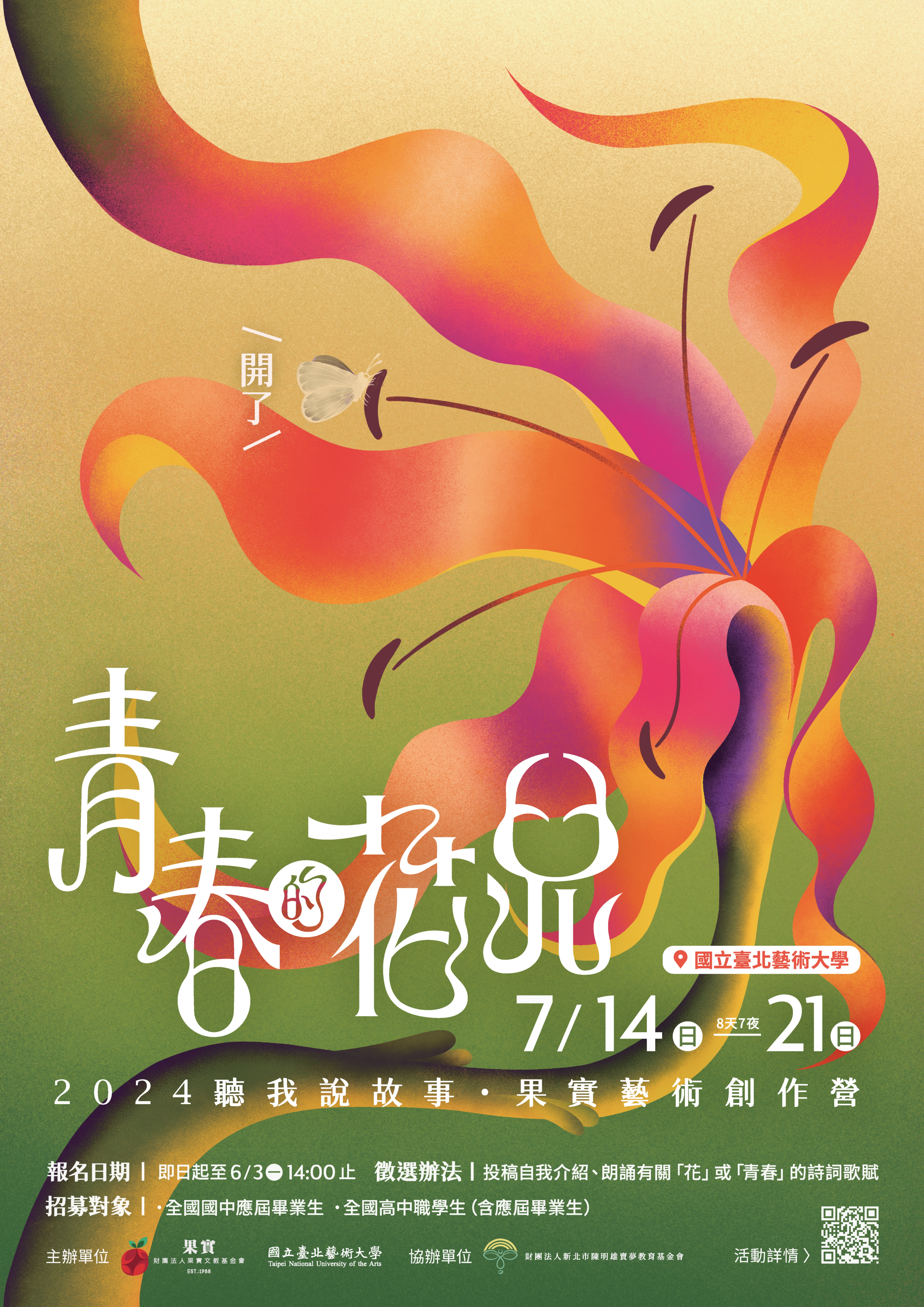 八、檢附2024年果實藝術創作海報1張及報名簡章(請見附件)。