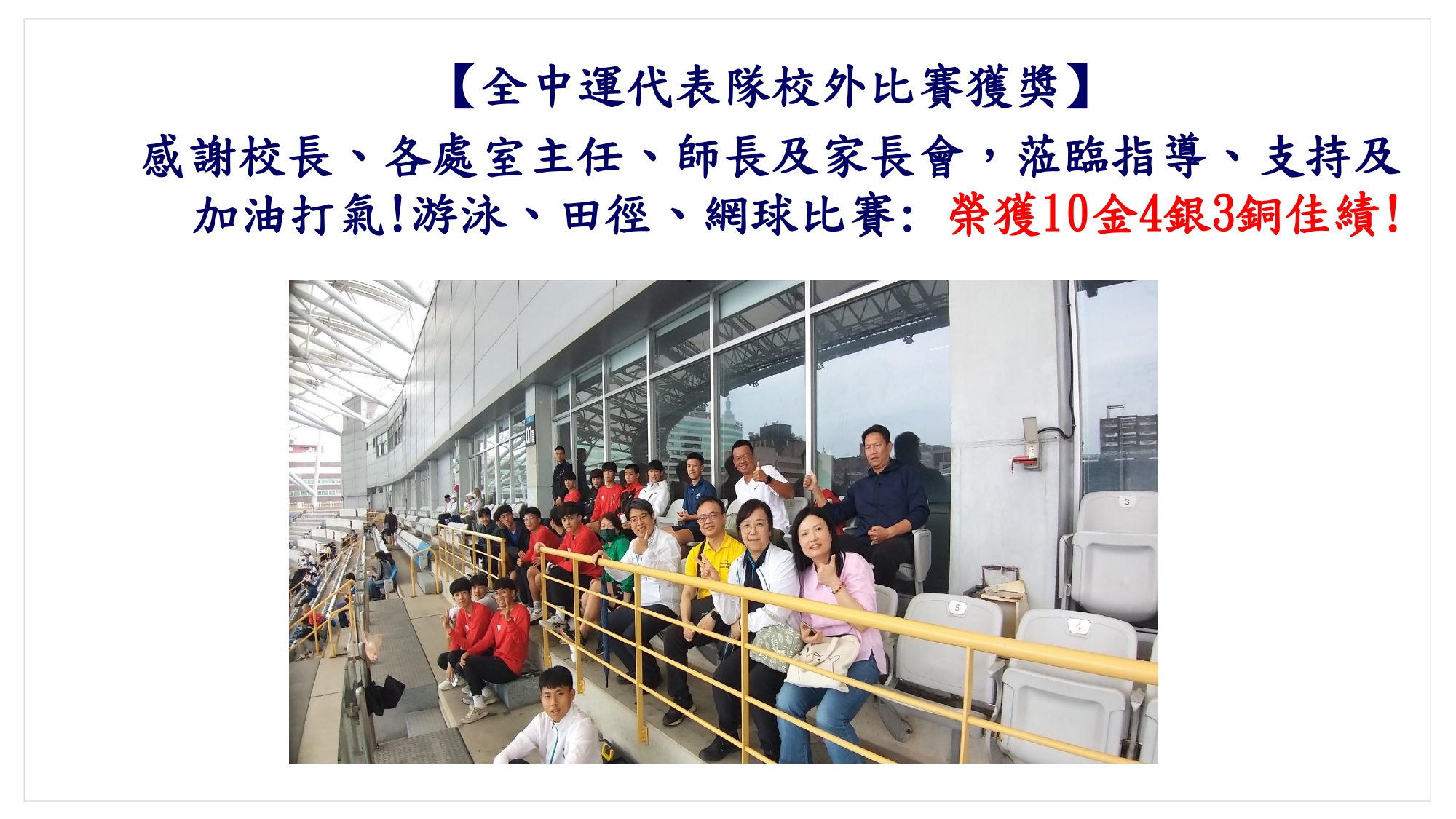 【狂賀】本校游泳、田徑、網球運動代表隊榮獲113年全中運10金4銀3銅佳績!