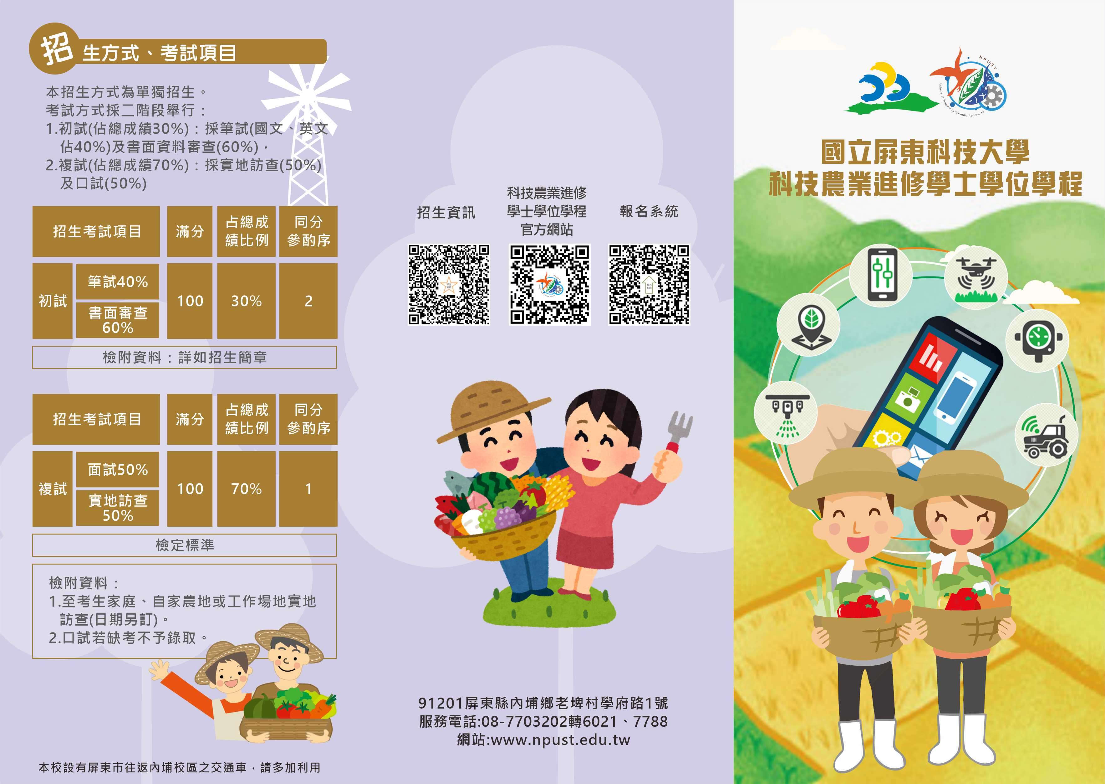 [112升學] 轉知國立屏東科技大學112學年度科技農業進修學士學位學程資訊。