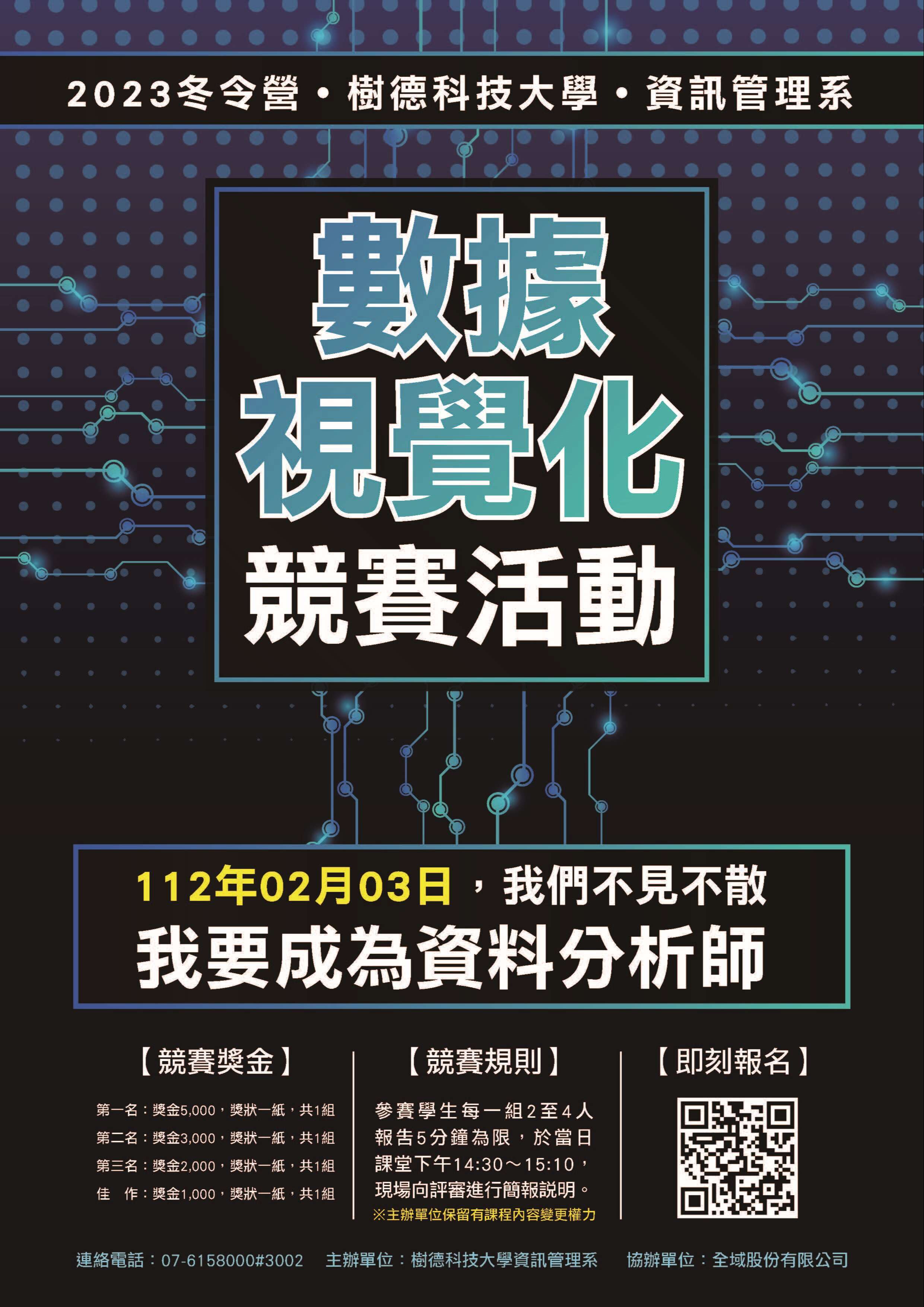 一、本活動於112年2月3日(星期五)本校資訊管理系舉辦,將提供數項獎金,相關活動辦理請參閱附件之活動說明。