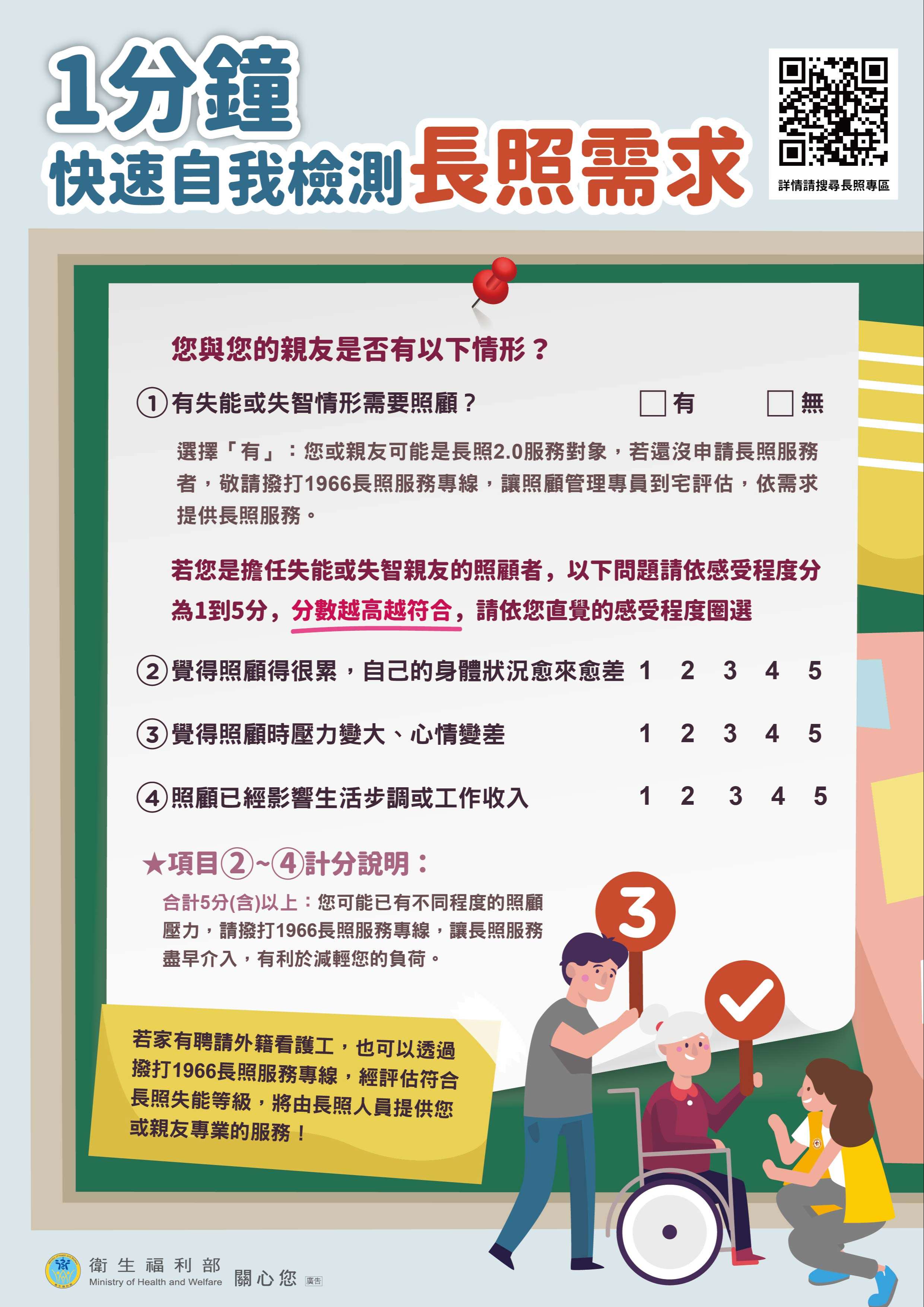因應快速老化的社會,我國自106年1月起推動「長照十年計畫2.0」,除擴大服務對象,增加服務項目,為減輕家庭照顧負擔,並設「1966長照服務專線」,提供民眾申請長照服務之單一窗口。