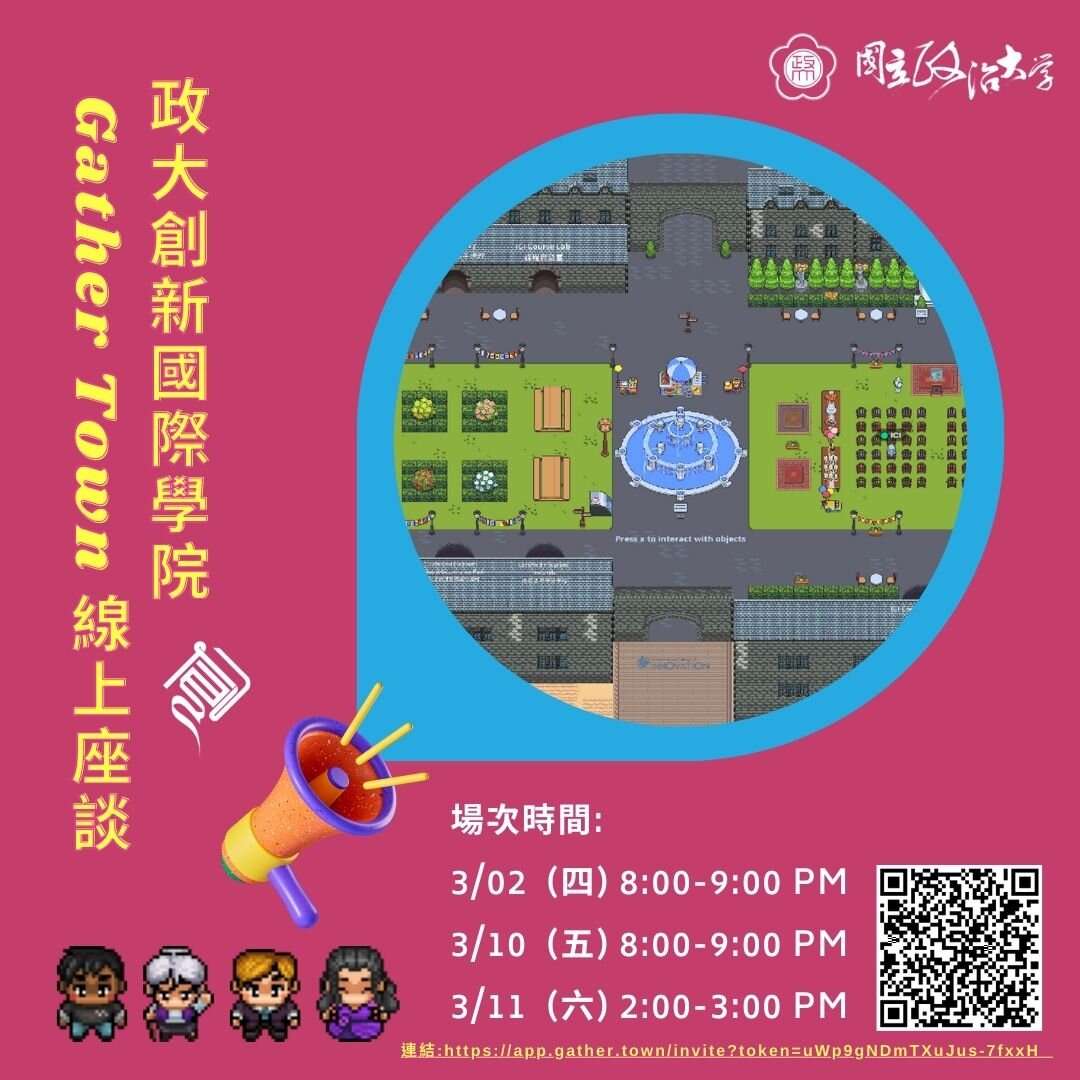 一、本校創新國際學院為台灣第一個以問題解決導向、跨領域學習為中心的國際化學院,為增進高中師生及其家長深入了解本學院,特舉辦「2023 年Gather Town 與高中生線上座談」活動,提供本院特色介紹及解說,並可線上直接與教授進行交流互動。此活動主要針對高三學生,亦歡迎高一及高二學生參加,可提早發現自己的興趣,為將來適性升學即早規劃及準備。
