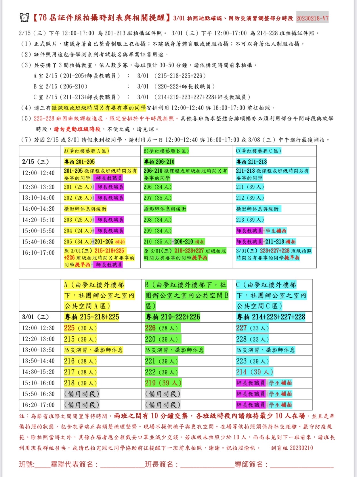 3/01(三)拍證件照因防災演習調整部分時段,詳見附圖。