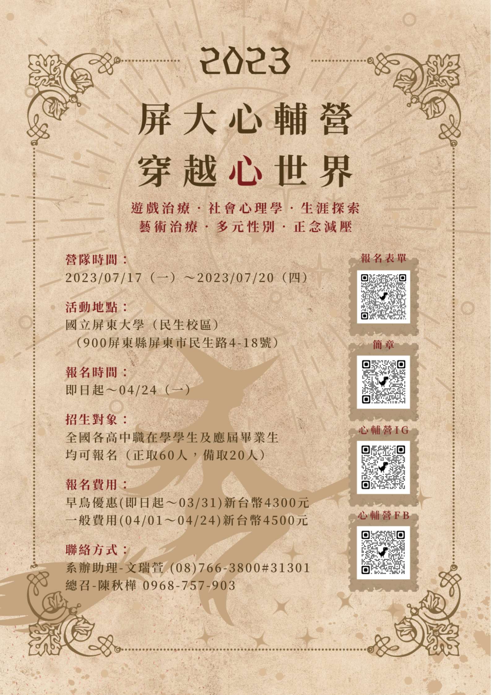 一、活動名稱:2023屏東大學心輔營-穿越心世界。