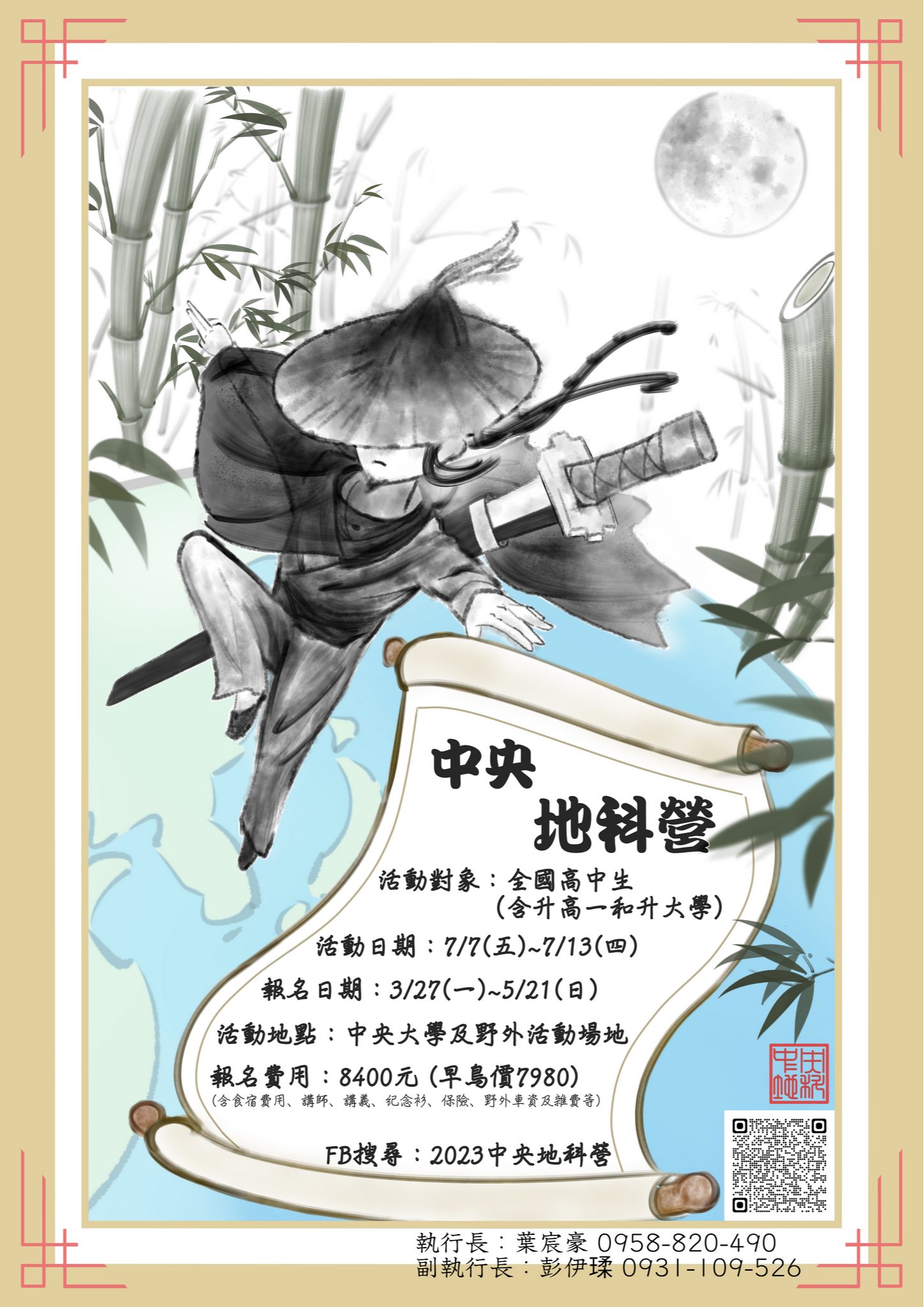 一、本校地球科學學院大氣科學學系、地球科學學系、太空科 學與工程學系、地球科學學院學士班將於112年7月7日(星 期五)至7月13日(星期四)在中央大學校區舉辦全國高中地球科學研習營。