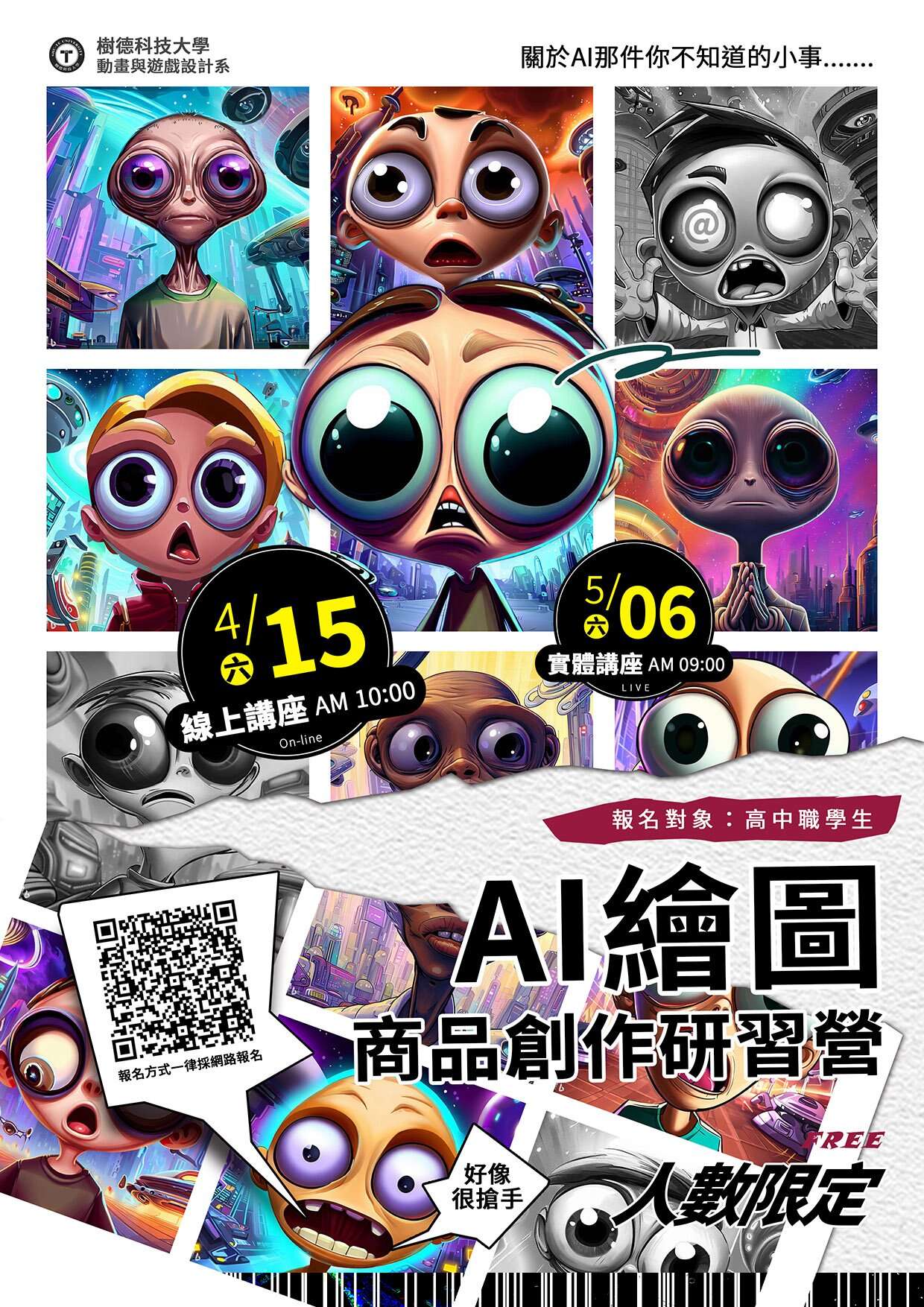 一、歡迎高中職對於AI繪圖與商品創作有興趣的同學報名參加,相關研習課程內容如附件。