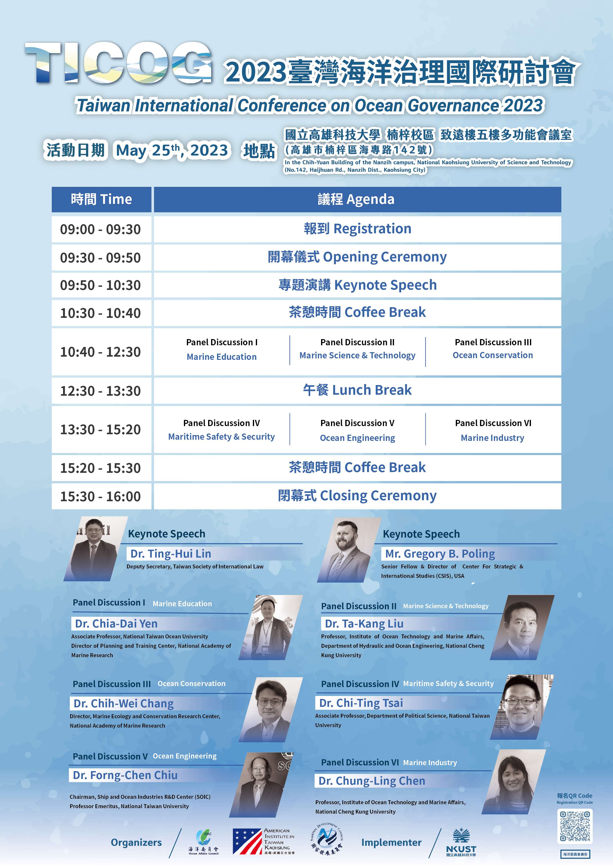 轉知海洋委員會、國家發展委員會及美國在台協會高雄分處(AIT /K)國際合作舉辦「2023臺灣海洋治理國際研討會」,請同仁、師生於112年5月10 日(星期三)前踴躍報名參加。(如附檔)