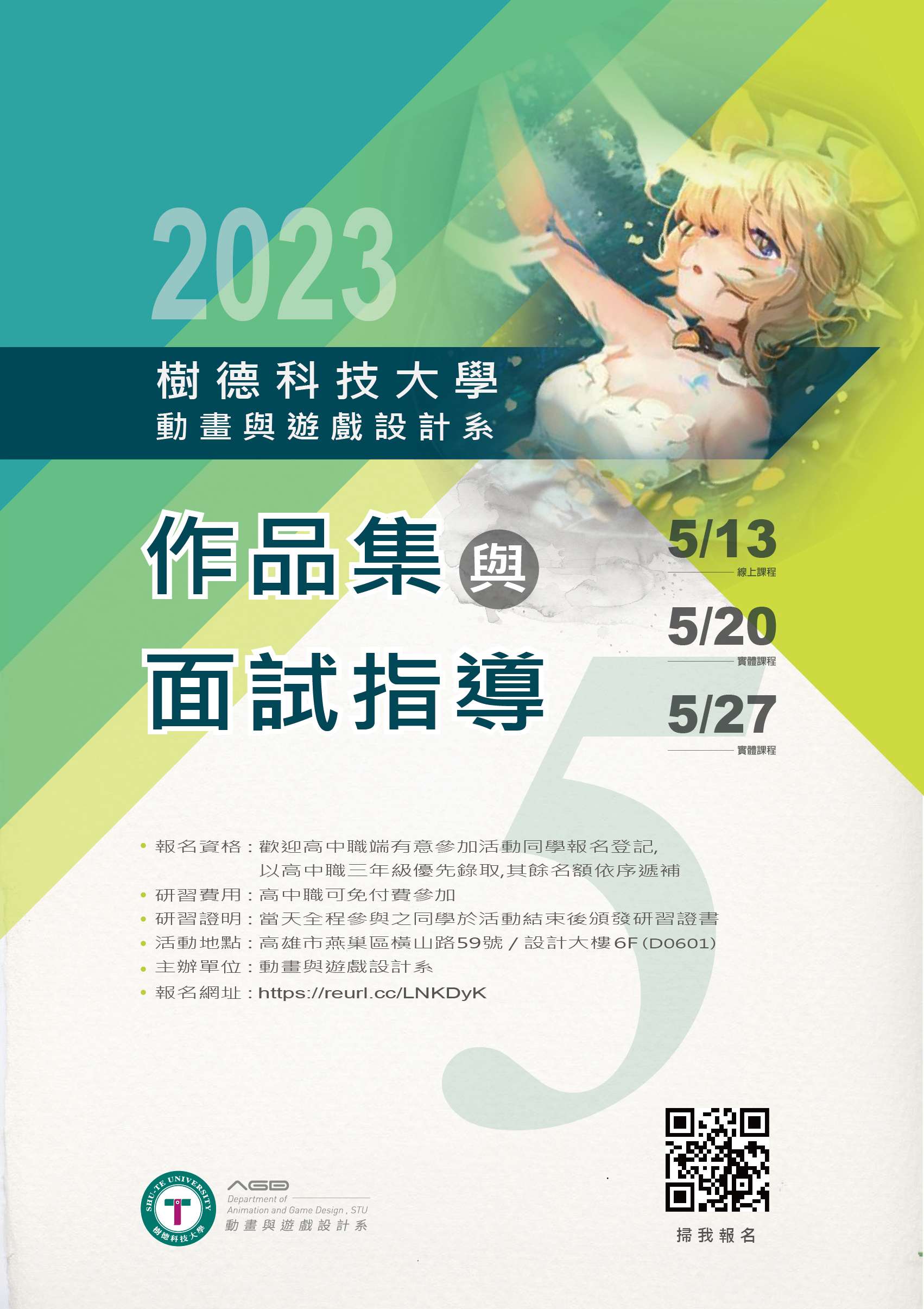 轉知樹德科技大學動畫與遊戲設計系舉辦「作品集與面試指導」活 動,敬邀本校學生踴躍報名參加