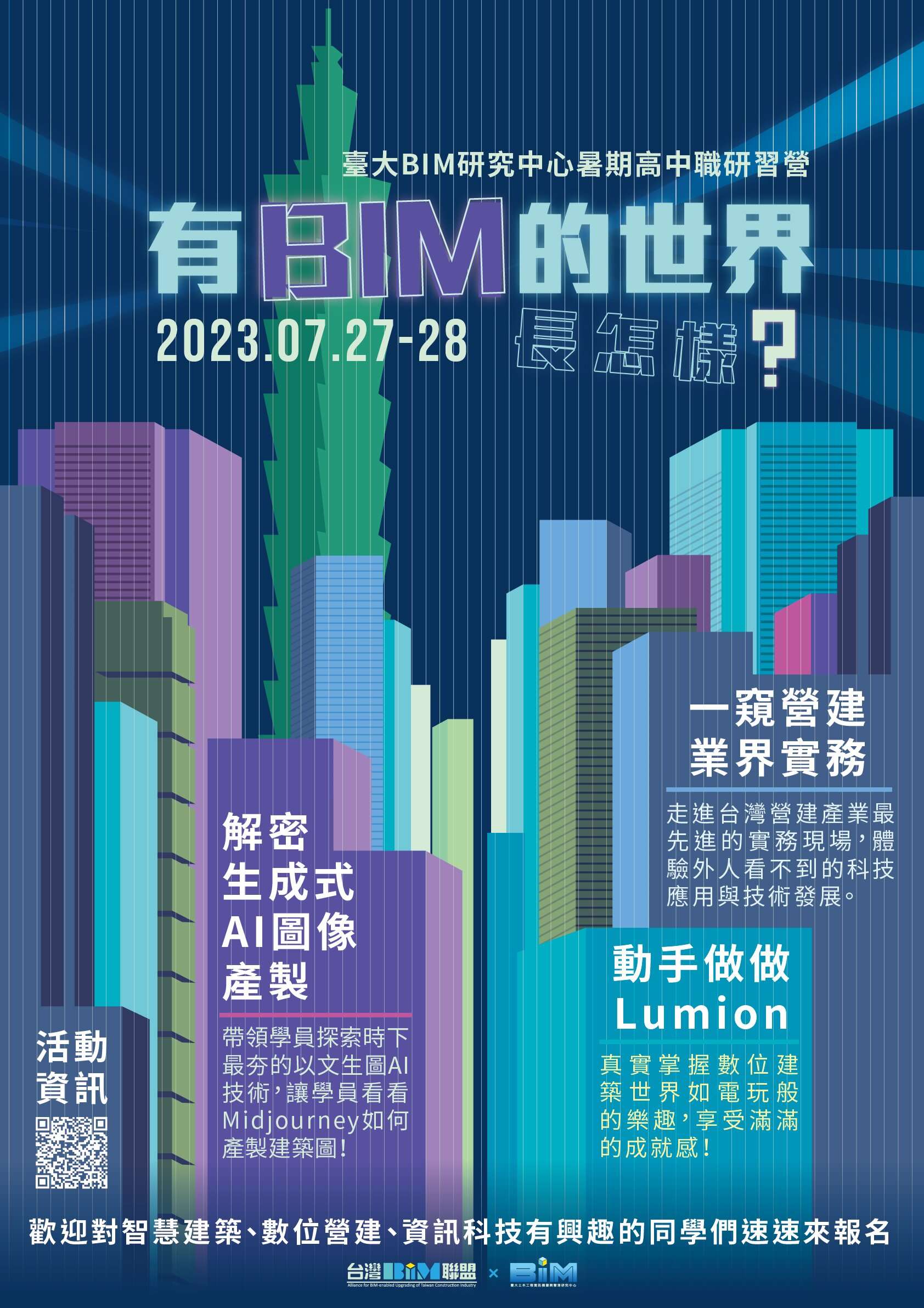 一、臺大BIM研究中心辦理為期2日高中職暑期BIM研習活動,帶領學員走入營建數位世界,了解BIM(建築資訊塑模/模型)如何打造出智慧城市雛型。敬請踴躍參加,活動內容詳如附件。
