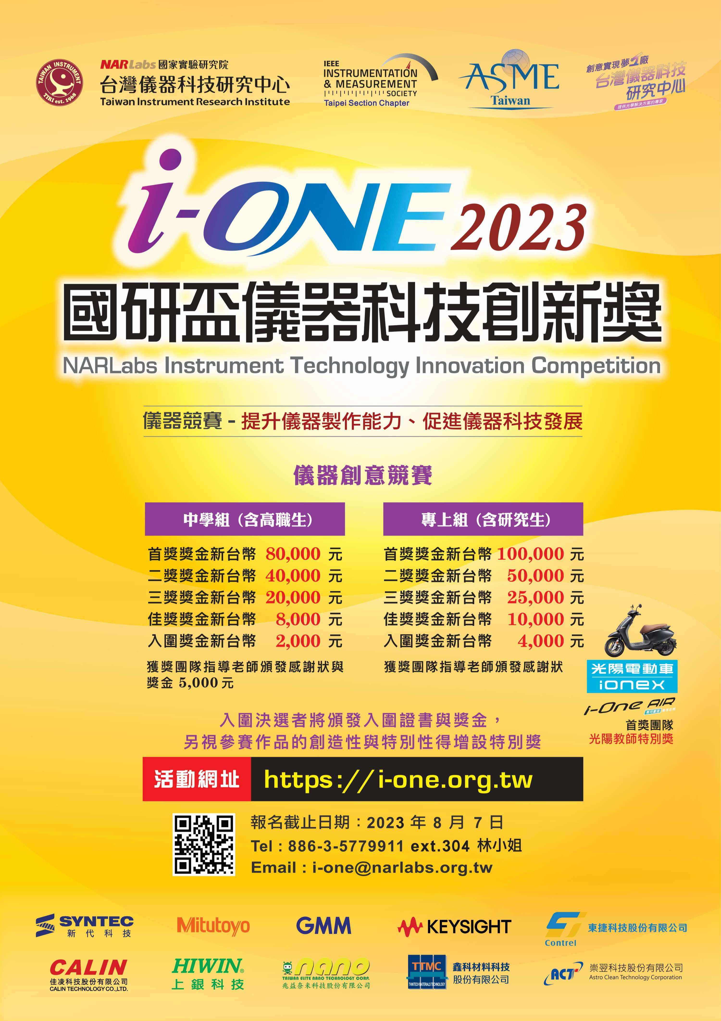 轉知財團法人國家實驗研究院辦理2023 年「第15屆國研盃 i-ONE 儀器科技創新獎」