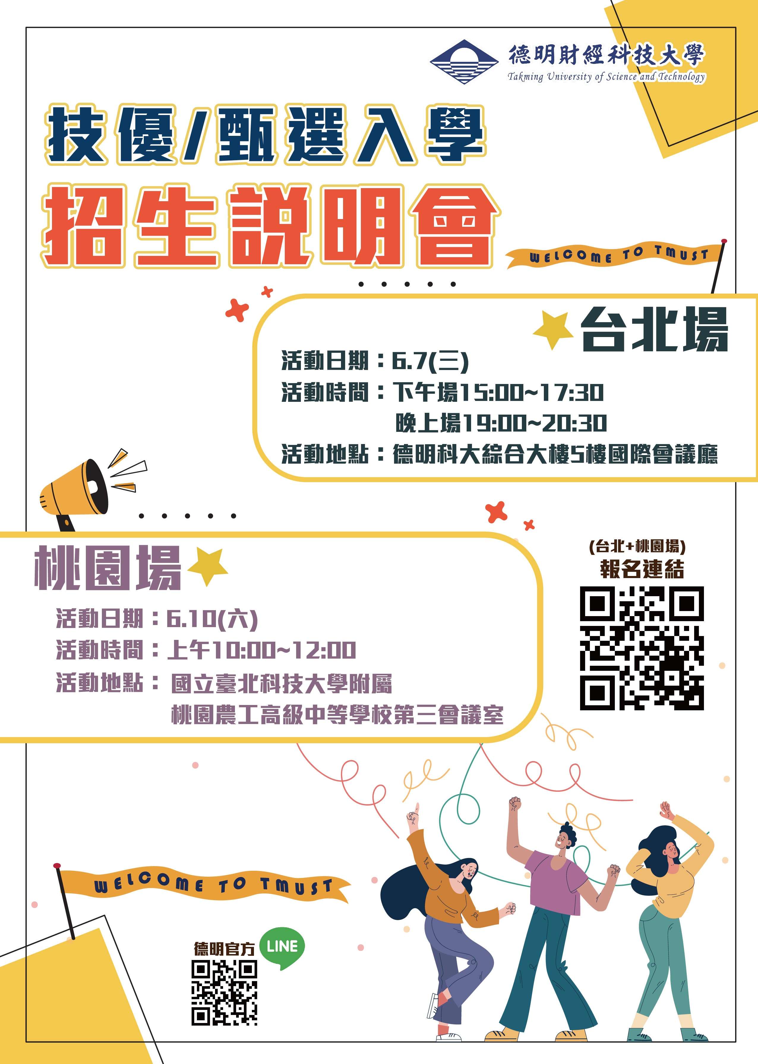 (一)台北場:112年6月7日(星期三)下午場15時00分至17時30 分、晚上場19時00分至20時30分。