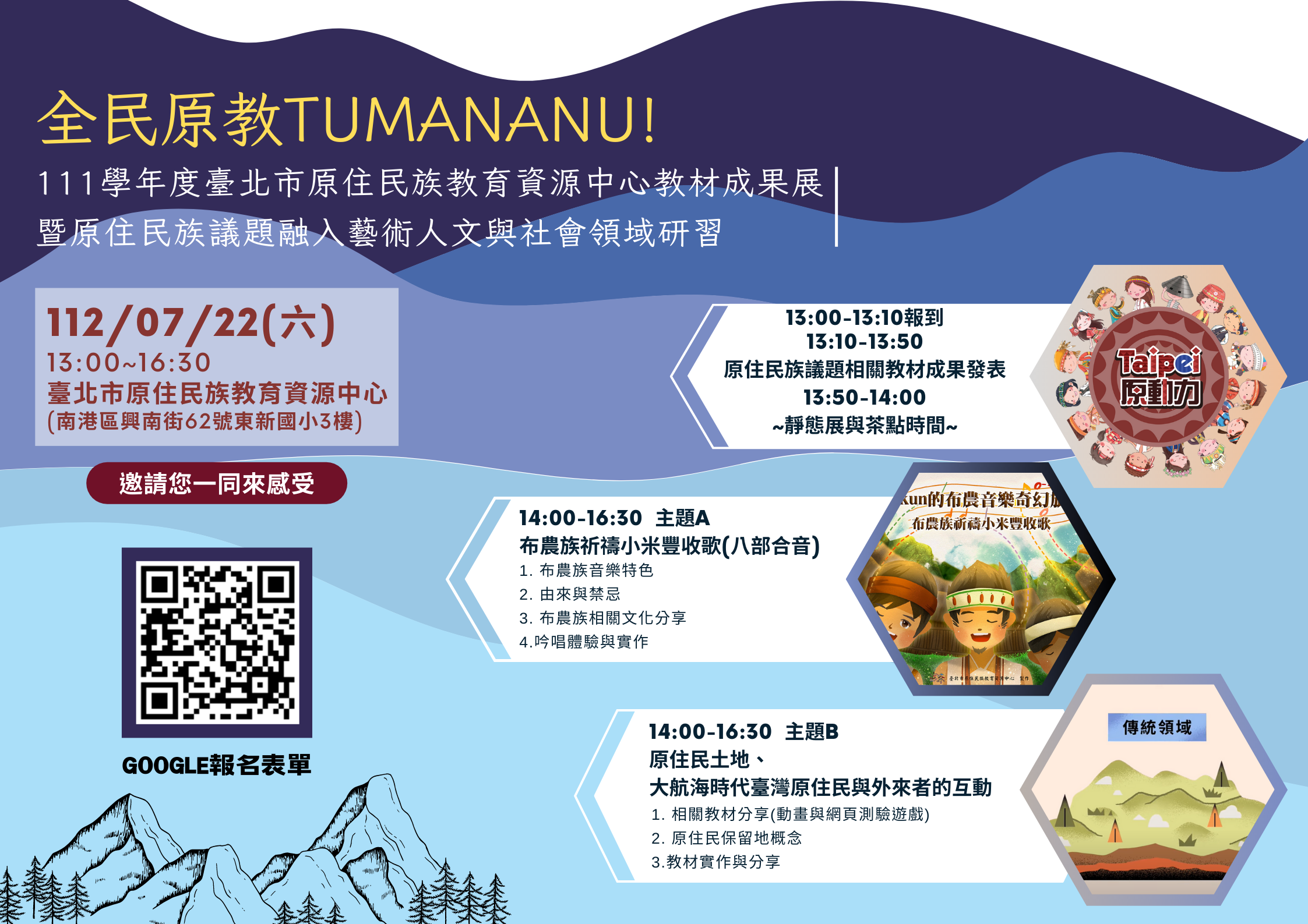 1、即日起至112 年 7月 18 日(星期二)下午3時前逕至 臺北市教師在職研習網站報名(北市研習字第 1120620017號),並完成Goolge報名表單 (https://forms.gle/rDhgJNnCULTJrh2e7)。