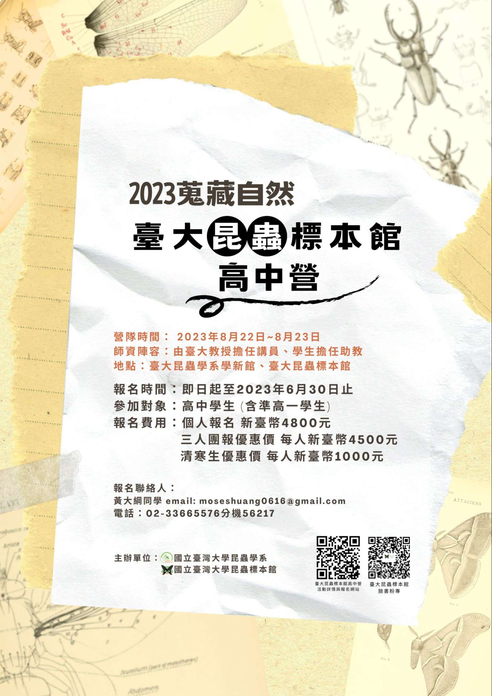 一、活動時間:2023年8月22至8月23日,活動地點為本校學新 館與昆蟲館。