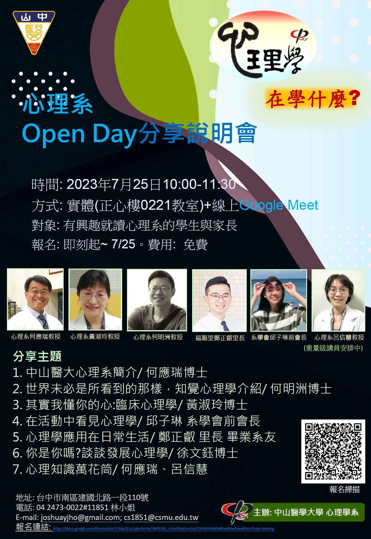 (一)主題:中山醫學大學心理系Open Day分享說明會