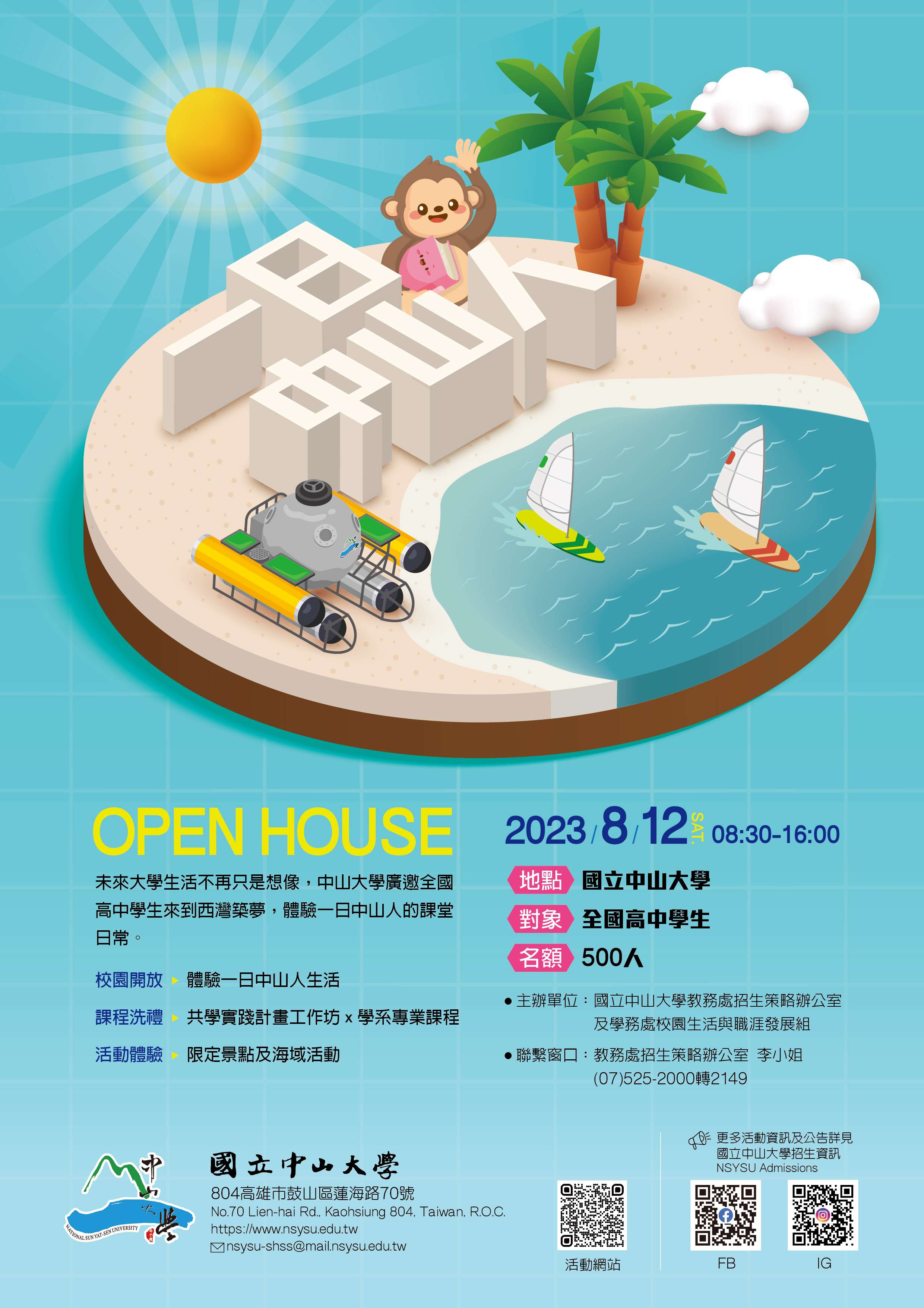 一、本校以專業課程、學系博覽會及活動體驗辦理校園參觀日,特以開放校園形式,使高中學生跳出原有學習之框架模式,體驗跨領域課程與本校特色體育活動,讓未來大學生活不再只是想像,爰邀請全國高中學生來到西灣築夢, 體驗一日中山人的課堂日常。