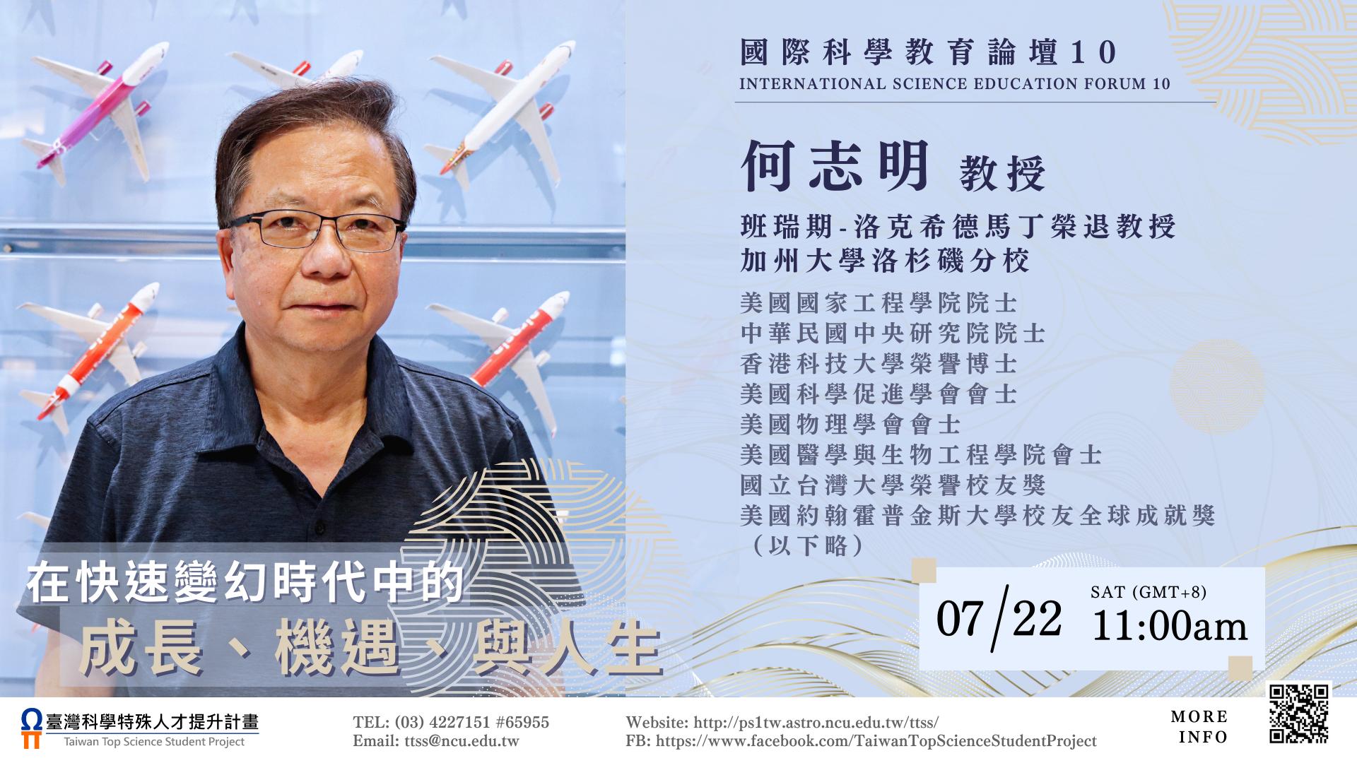 國立中央大學訂於112年7月22日辦理線上講座:《國際科學教育論 壇10》—「在快速變幻時代中的成長、機遇、與人生」, 歡迎報名參加,詳細資訊請見附件檔案,謝謝~