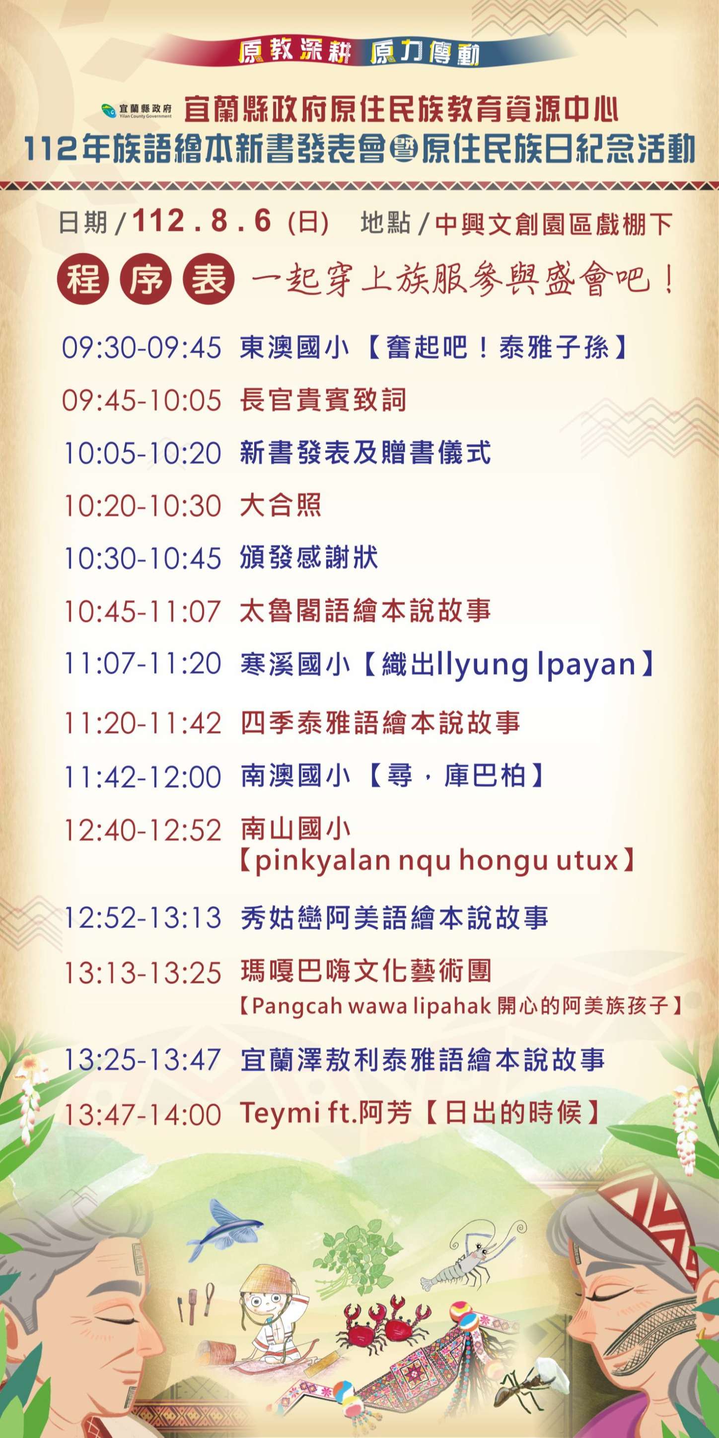 二、為推廣民族文化及發表宜蘭縣族語繪本教材,藉由族語繪 本的意涵增進族語能力,以理解宜蘭縣原住民族原有之在 地性傳統文化,並活絡原住民族教育,建立文化交流網 絡,以實踐全民原教目標。
