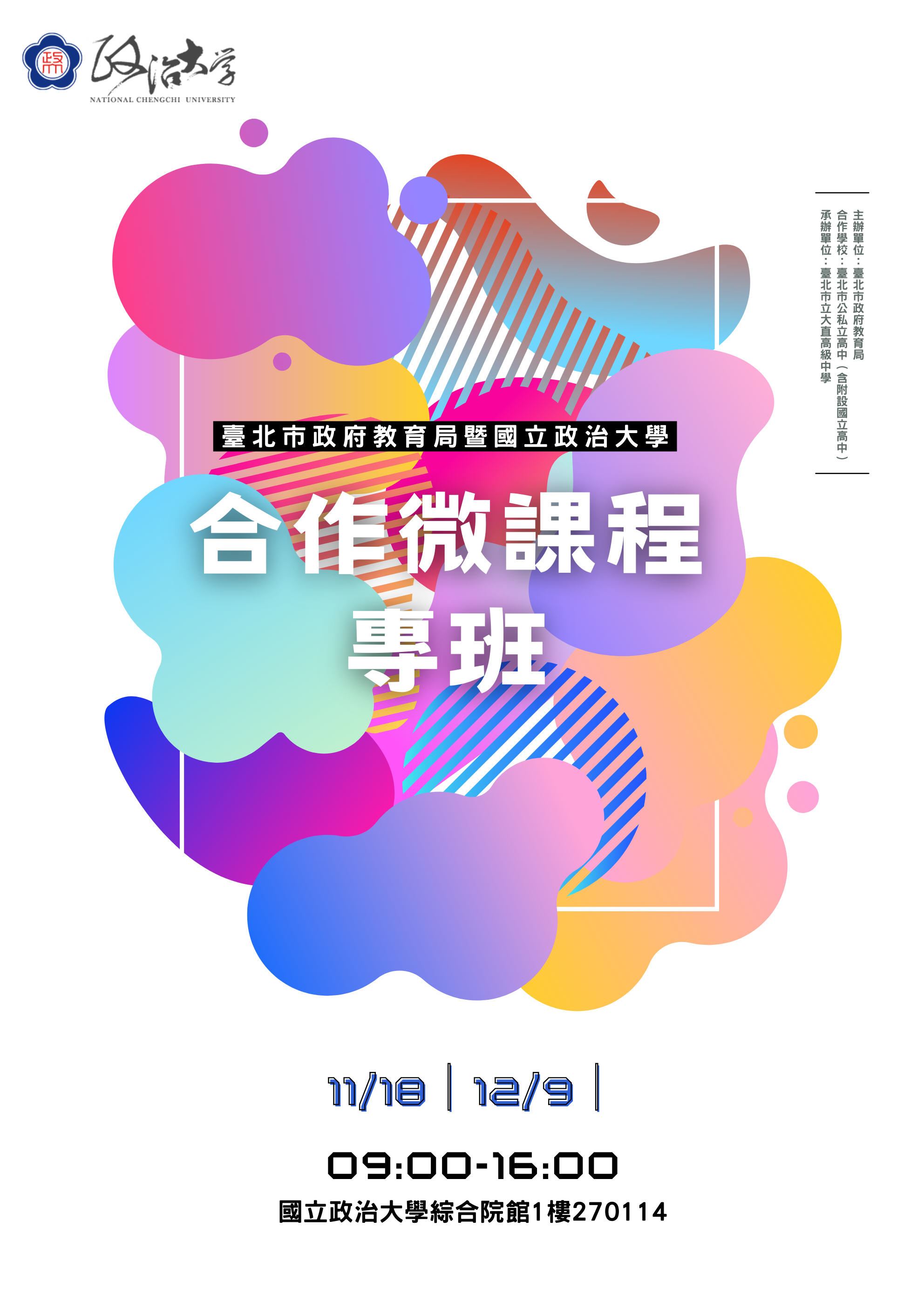 (一)地點:國立政治大學,實際上課教室將以信件通知修課學生。