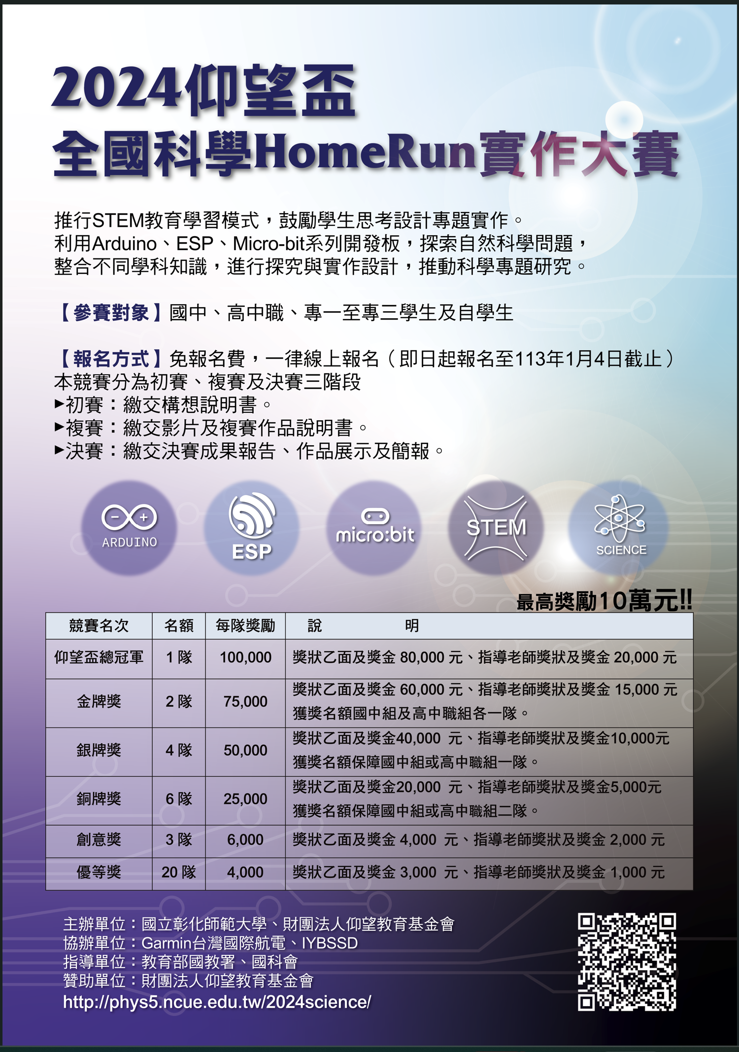 作設計,進行科專題探究而共同辦理「2024仰望盃全國科學Home Run實作大賽」,