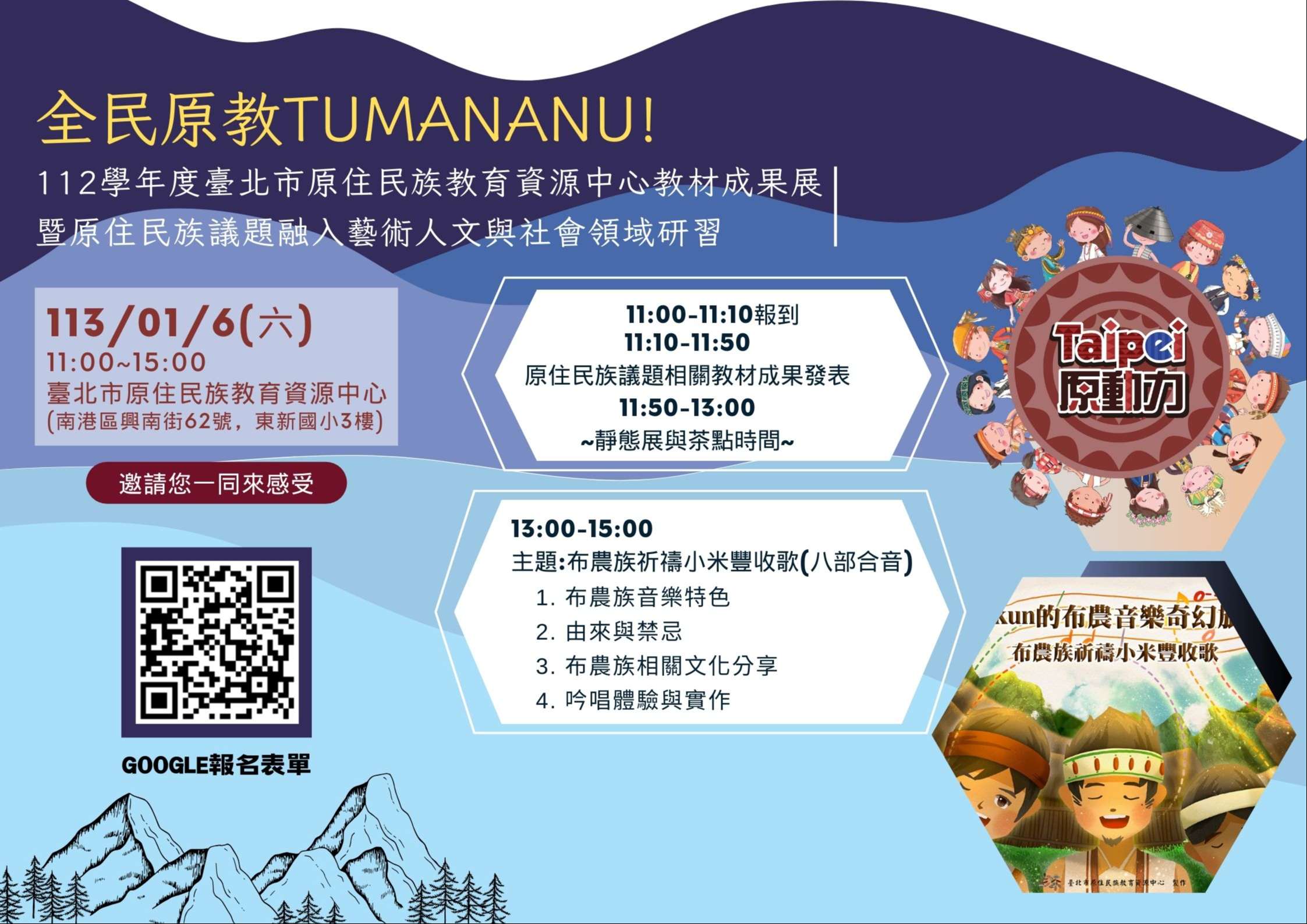 一、依據教育部國民及學前教育署補助112年度臺北市原住民族 教學中心計畫辦理。