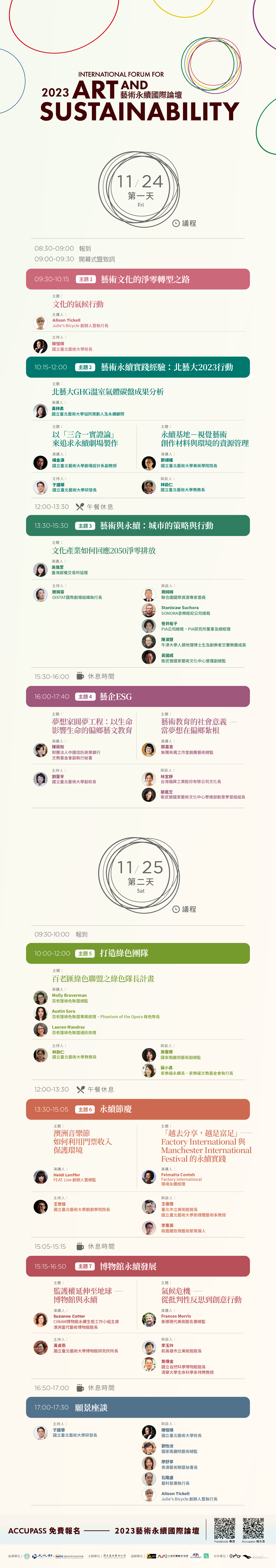 (一)活動詳細資訊請見藝術永續國際論壇粉絲專頁(網址:https://www.facebook.com/TNUAforum)。