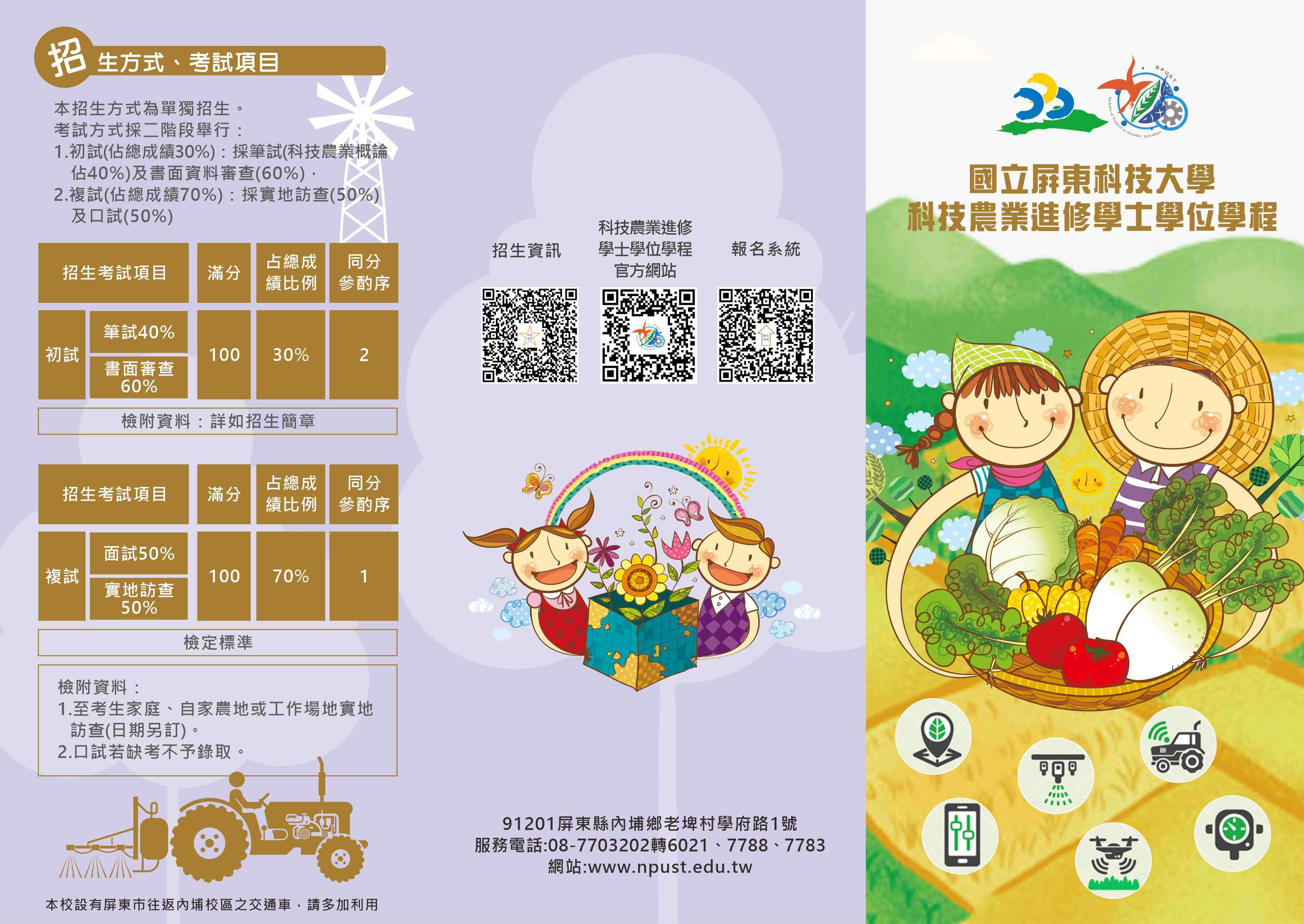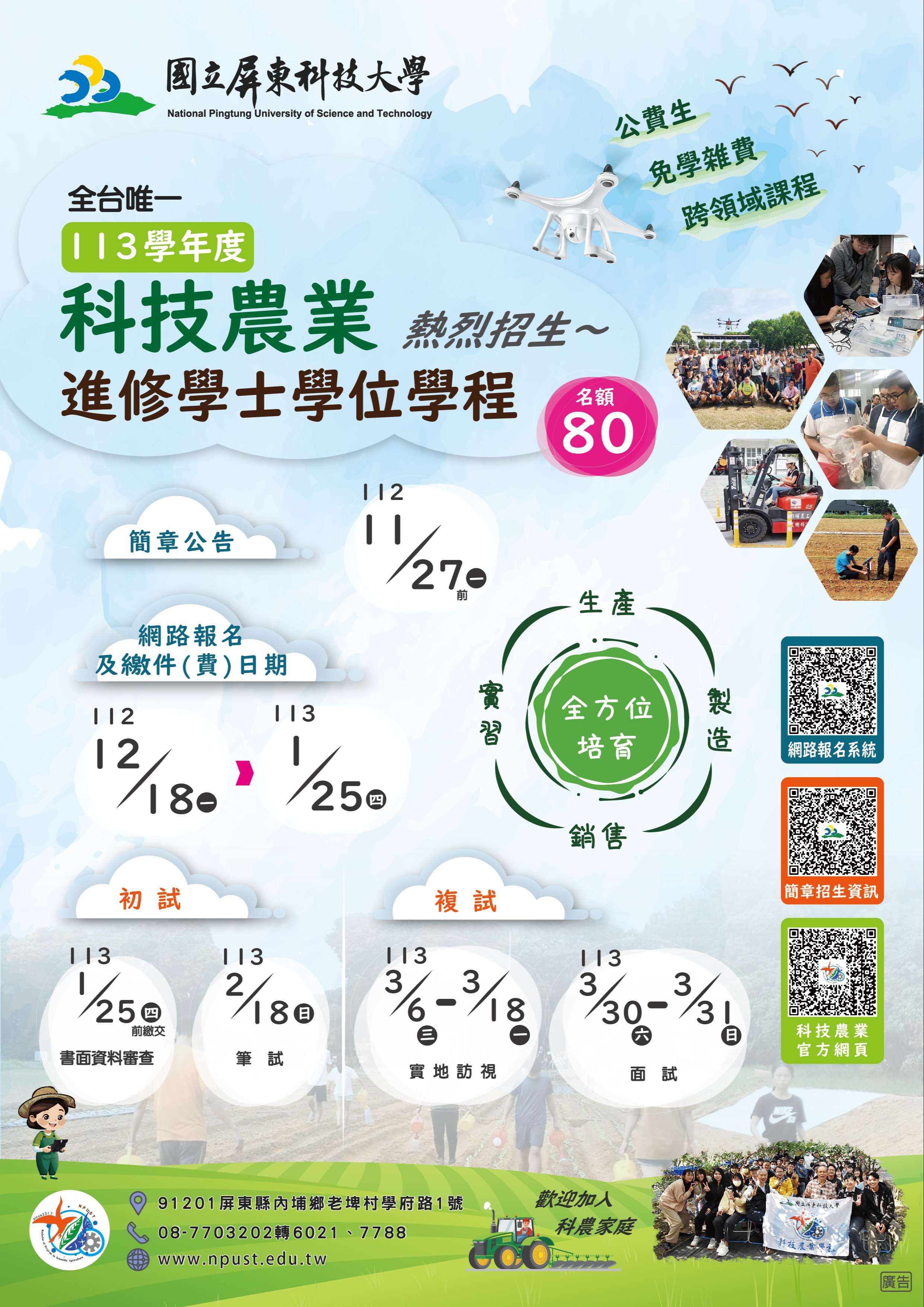 一、112年11月22日公告113學年度科技農業進修學士學位學程單獨招生簡章。