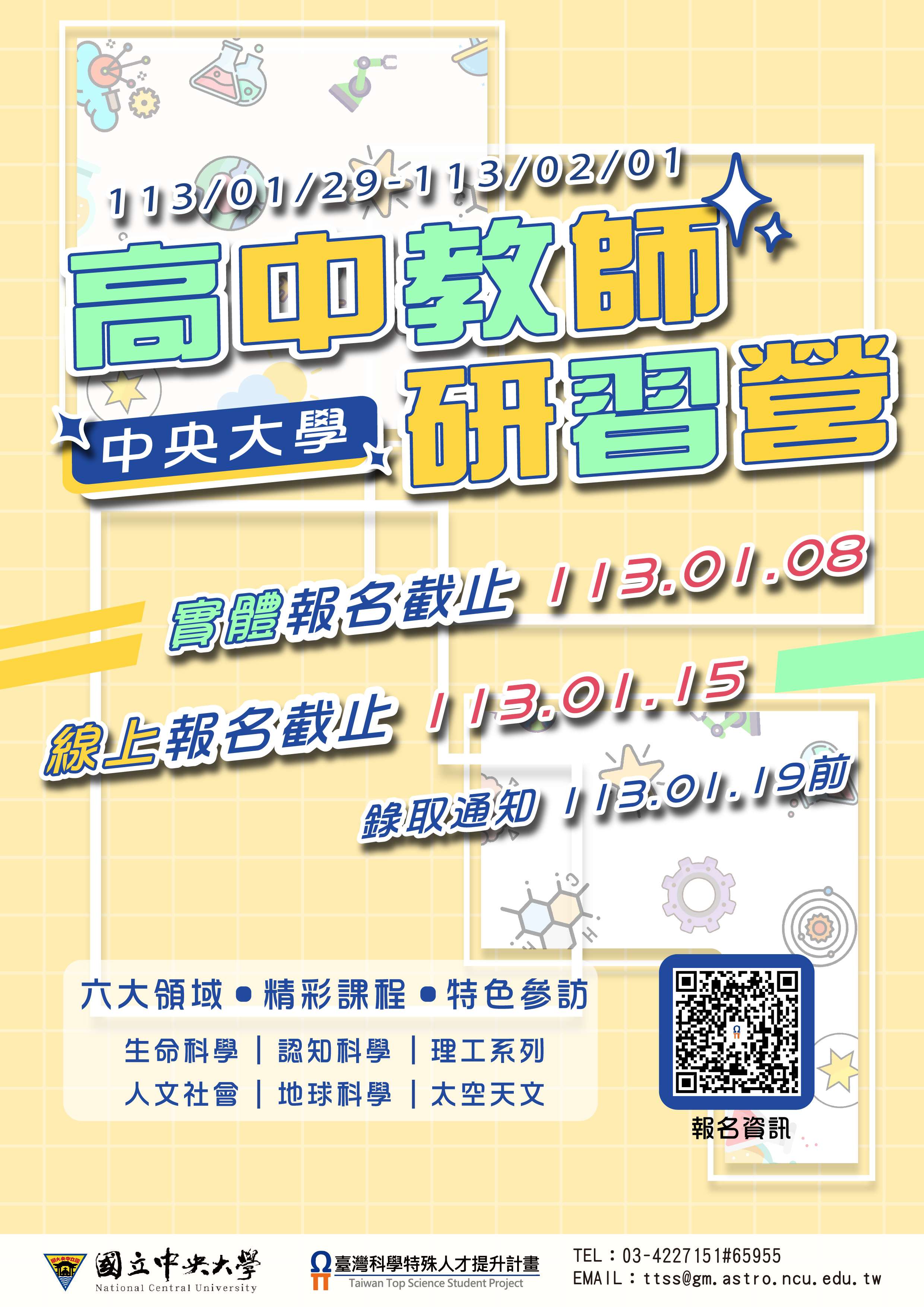 中央大學訂於113年1月29日至同年2月1日辦理「2024高中教師 研習營」