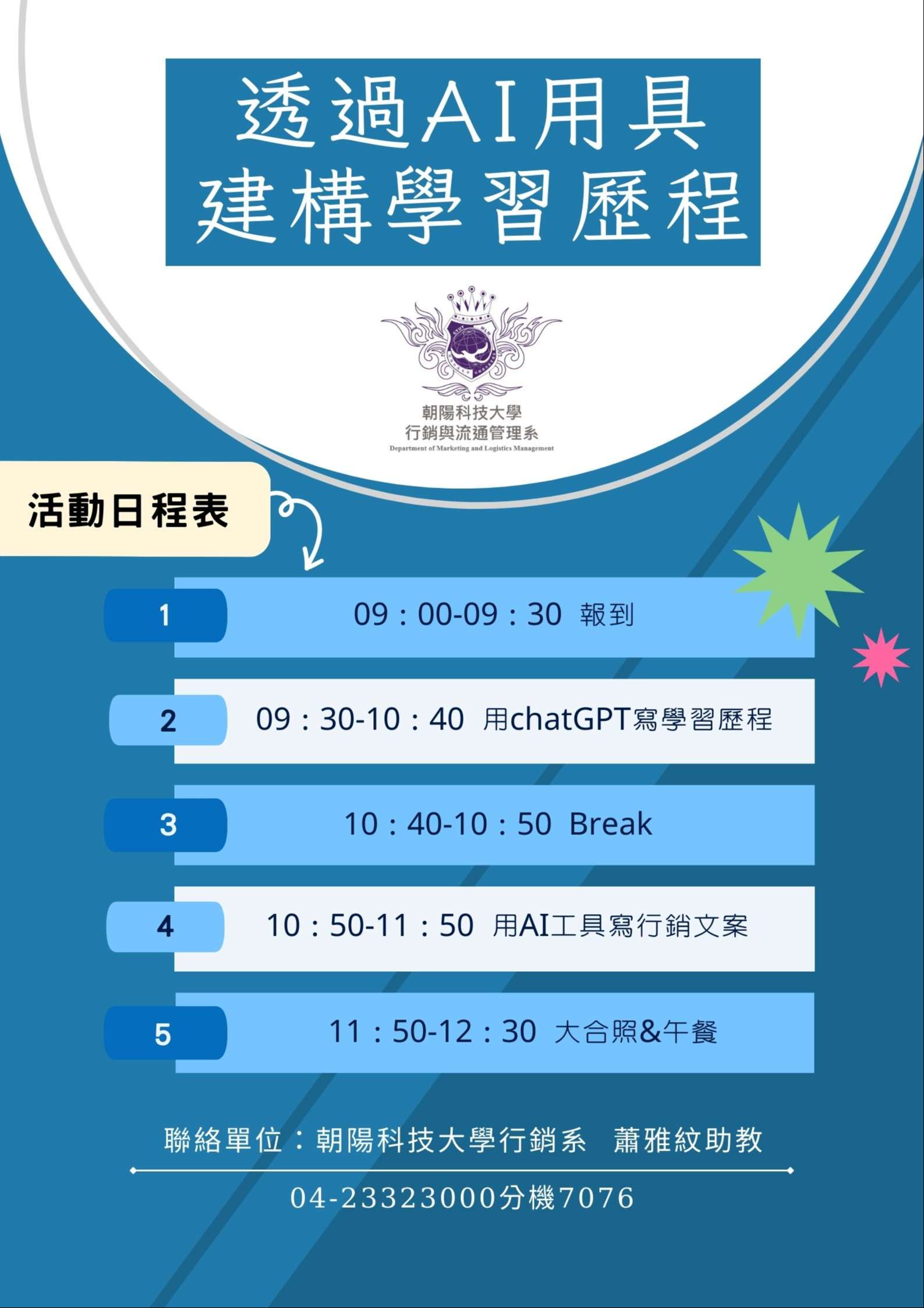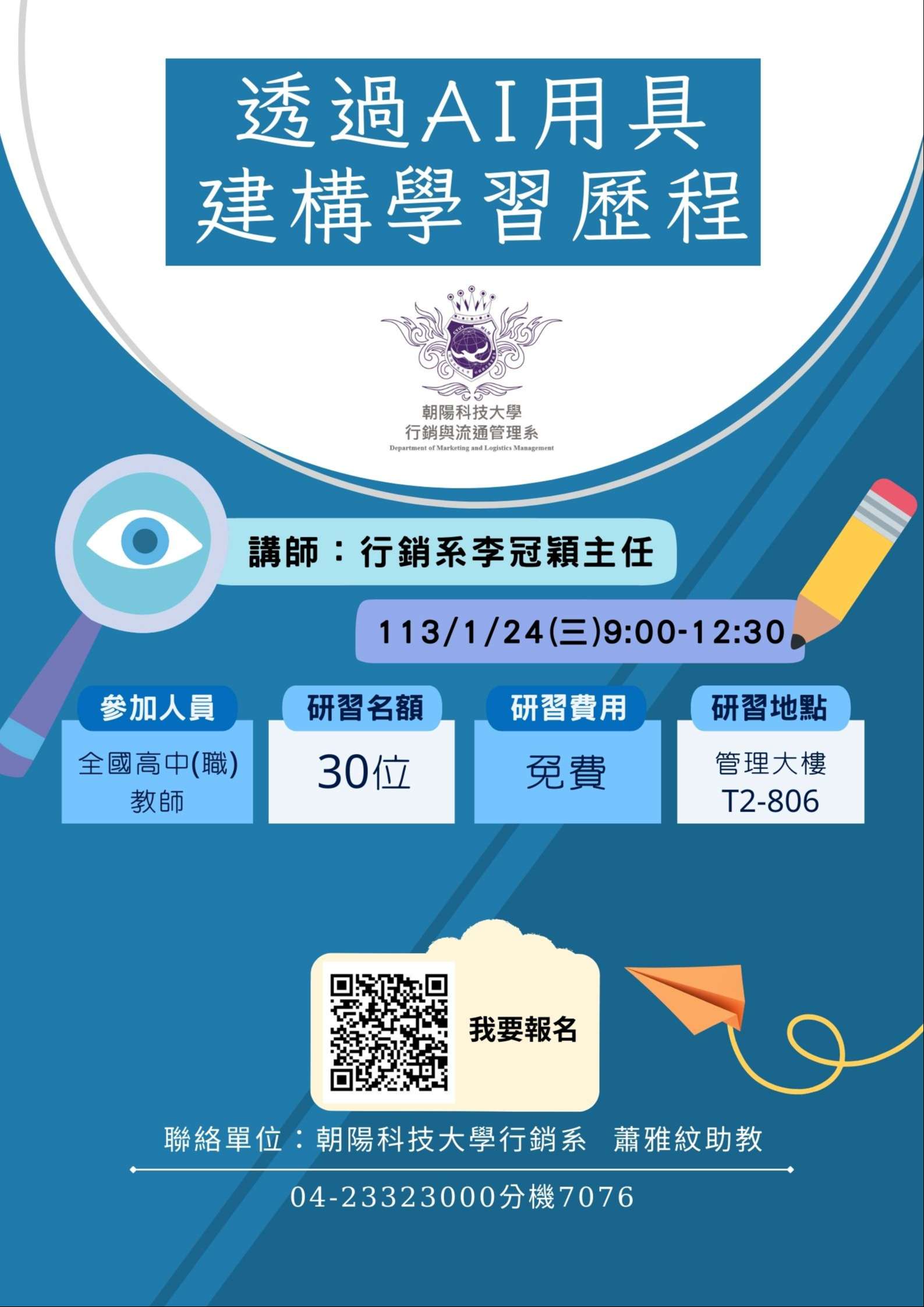 轉知朝陽科技大學行銷與流通管理系舉辦「透過AI用具建構學習歷程」 研習營