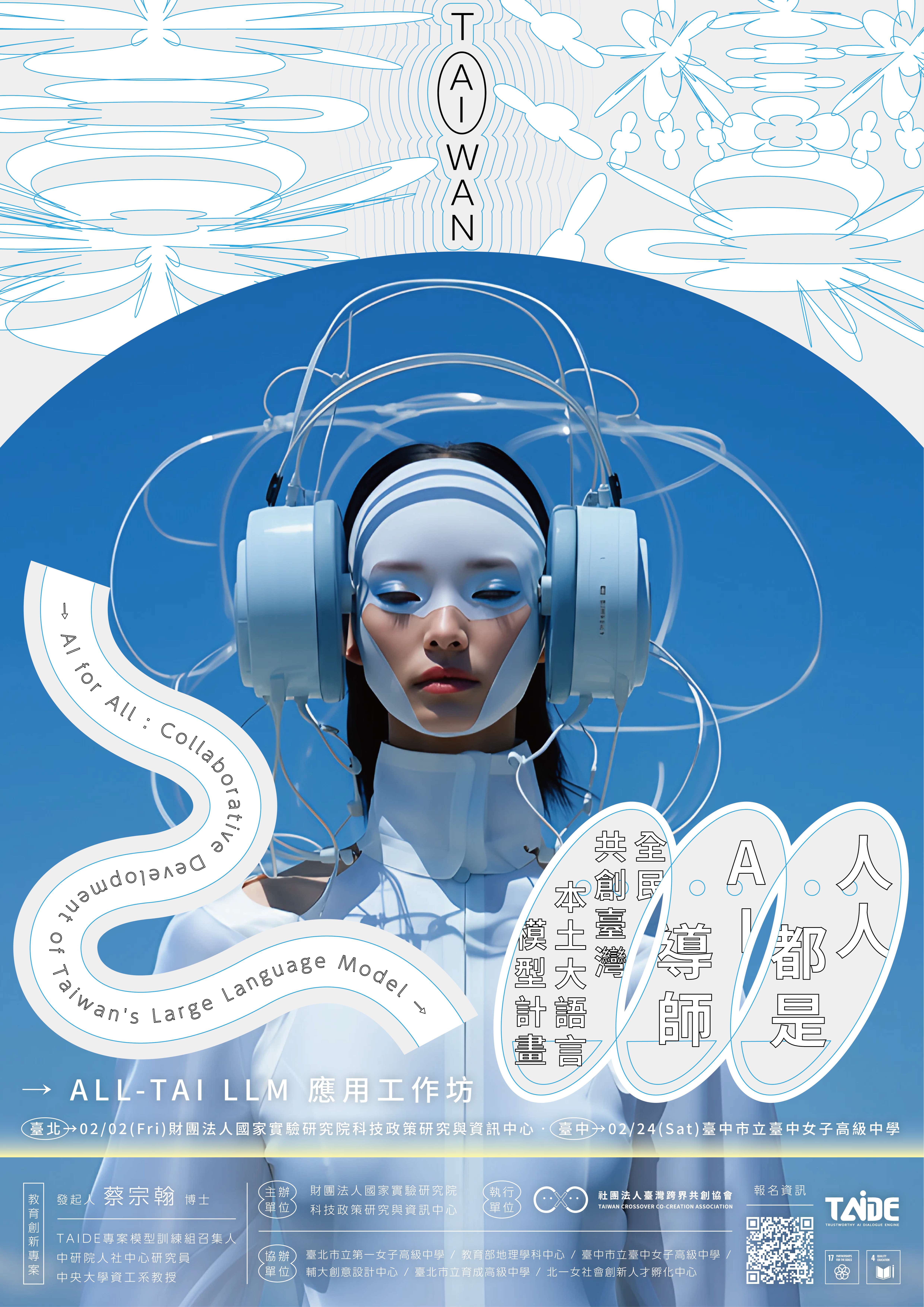 一、本校依據財團法人國家實驗研究院科技政策研究與資訊中 心「人人都是AI導師:全民共創臺灣本土大語言模型計 畫」協助辦理「ALL-TAI LLM應用工作坊」,工作坊實施計 畫與海報請見附件。
