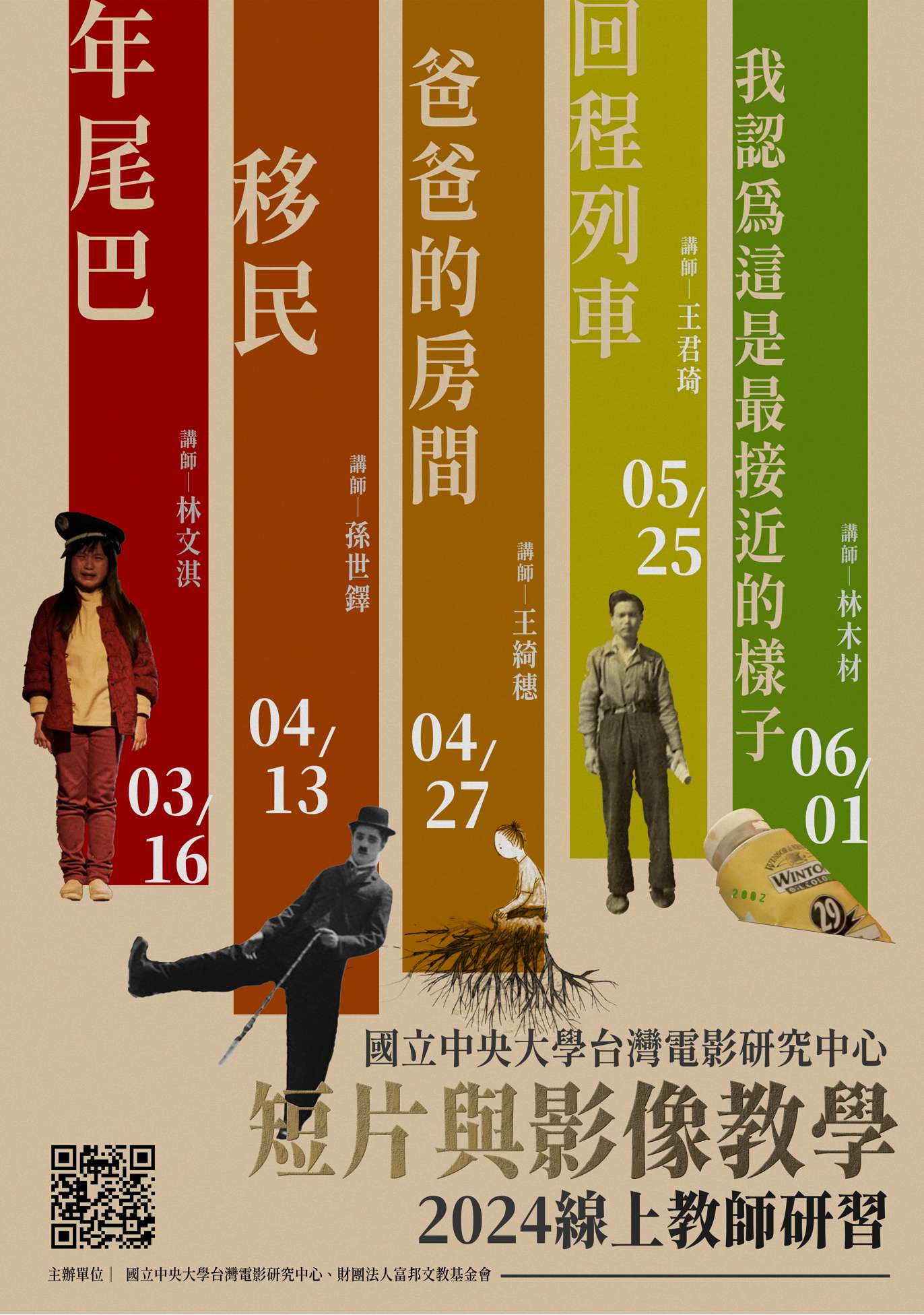 中央大學台灣電影研究中心為推廣影像教育將於113年3月16日舉辦「短片與影像教學:2024線上教師研習」,