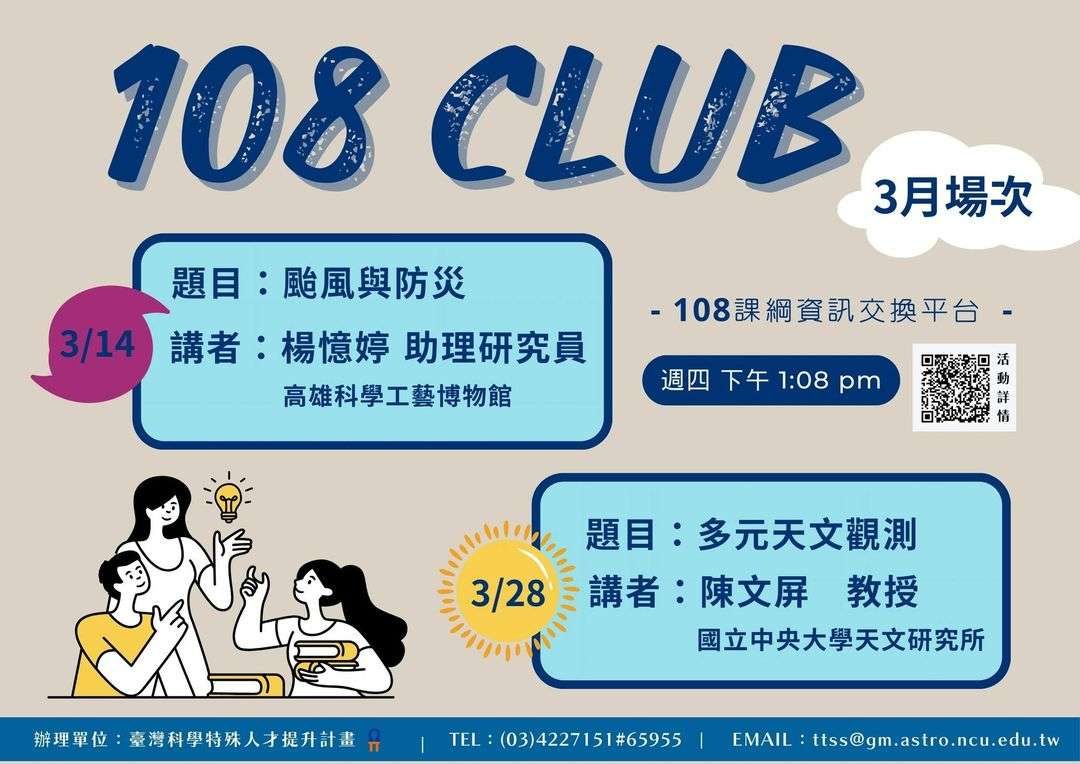 轉知國立中央大學訂於113年3月辦理《108俱樂部》線上講座活動
