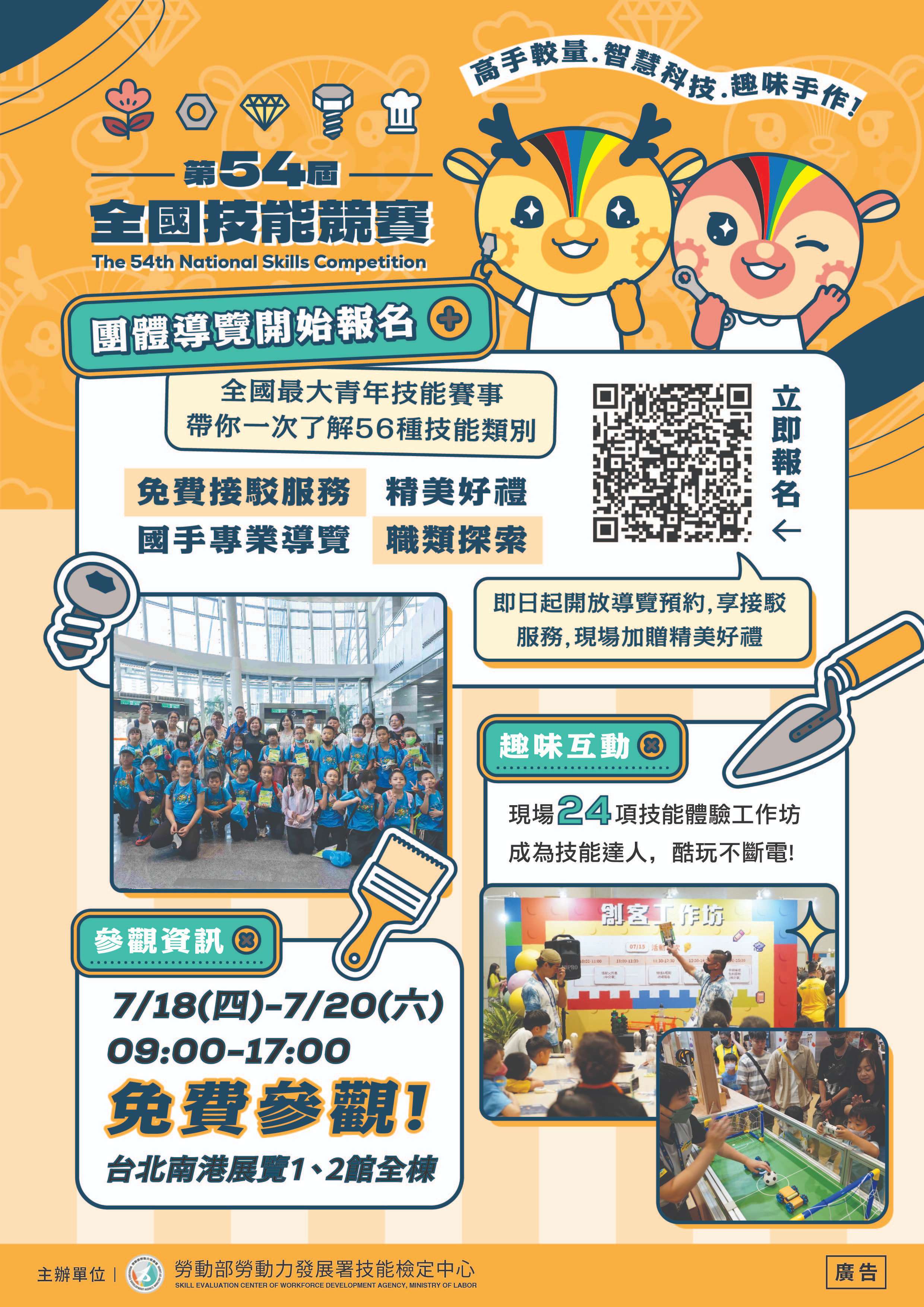 三、配合旨揭競賽活動歡迎各級學校安排學生戶外教學,師生 一同蒞臨參觀,大會將提供免費導覽服務(申請網址: https://ppt.cc/fUPv3x),期能強化技能教育、提升學習 意識,以達到向下紮根之目的。