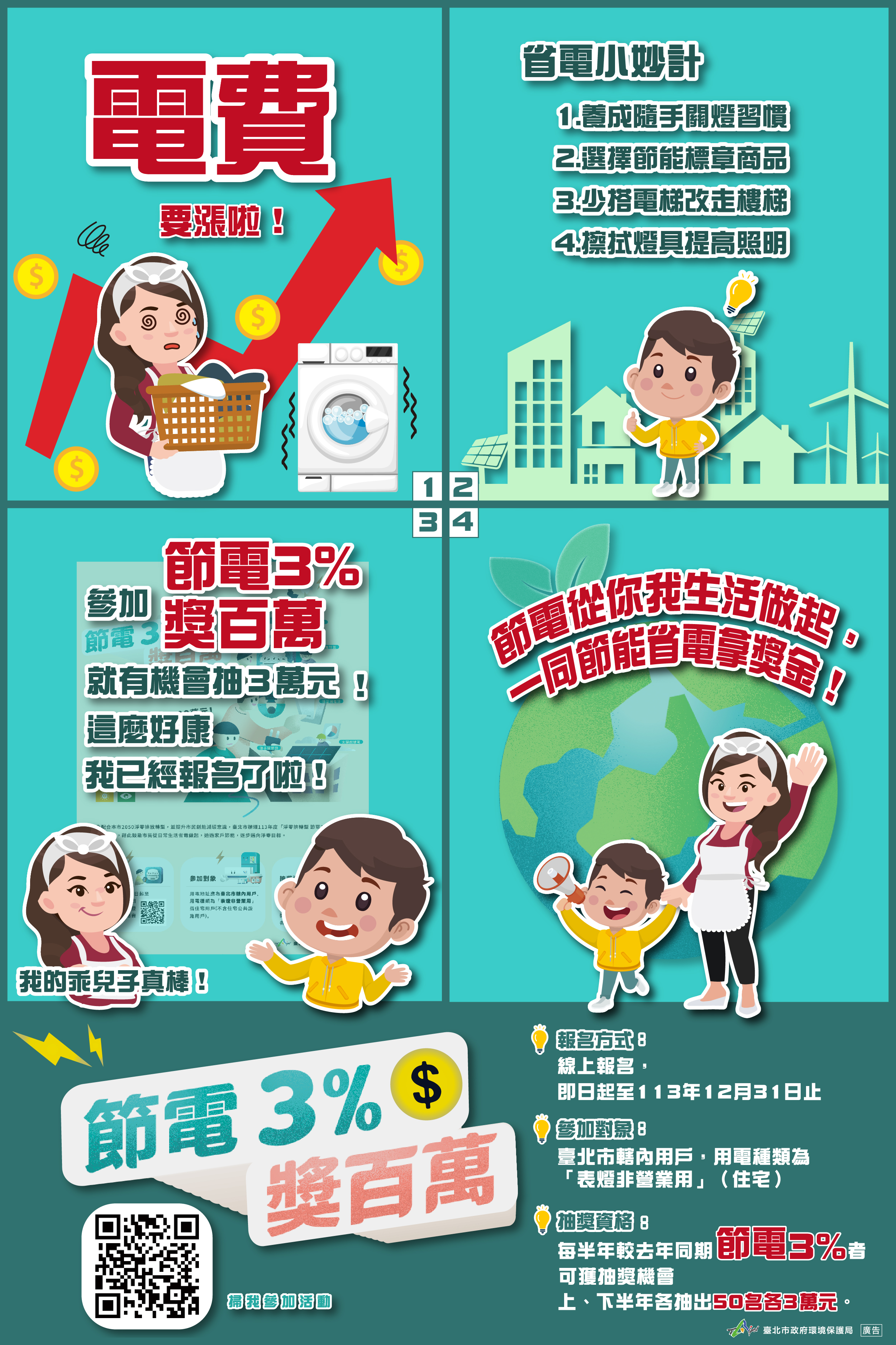 二、為鼓勵市民落實節能減碳行動,本府環境保護局於113年3月1日推出旨揭活動,因應本市2050淨零排放及經濟部宣布4月起調漲電價,民眾於日常生活中精進用電習慣等行動更顯重要。