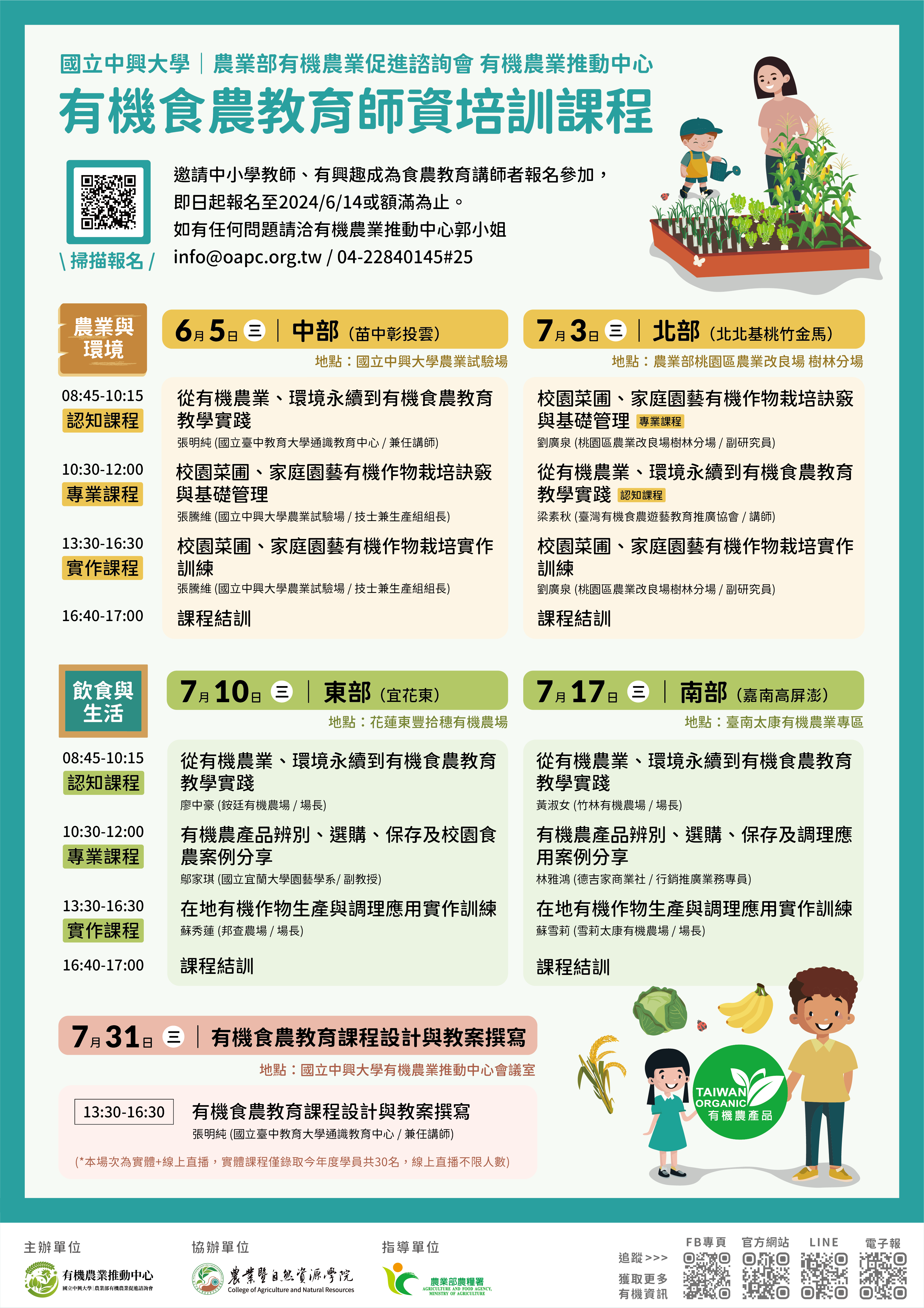 轉知國立中興大學辦理「有機食農教育師資培訓課程」