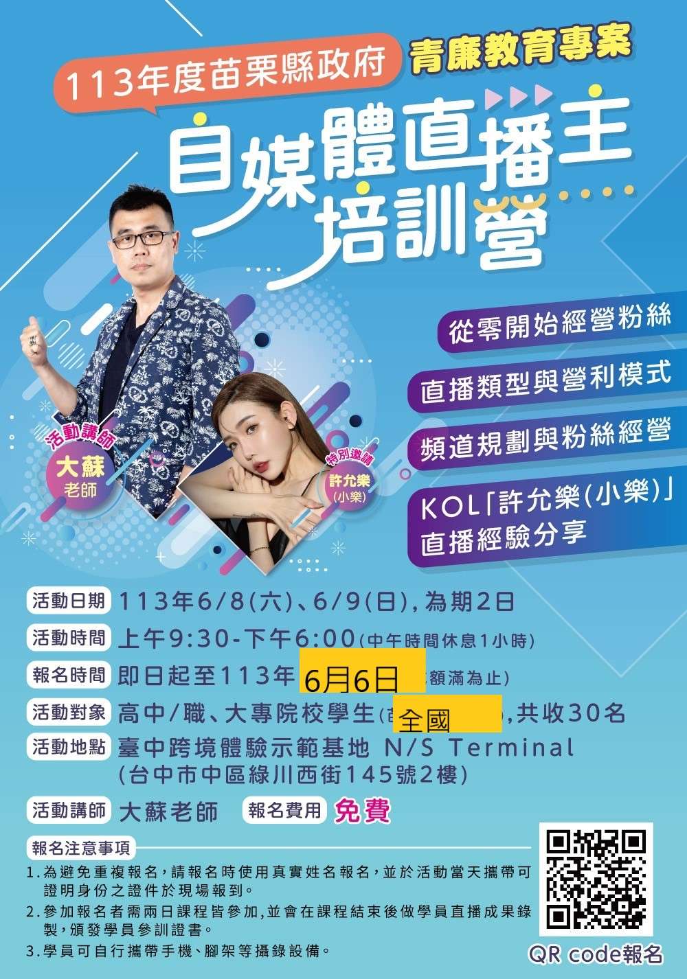 (四)報名資訊:即日起至113年6月6日止,共30名,報名網址 https://www.beclass.com/rid=284d82e6630af69b4679。