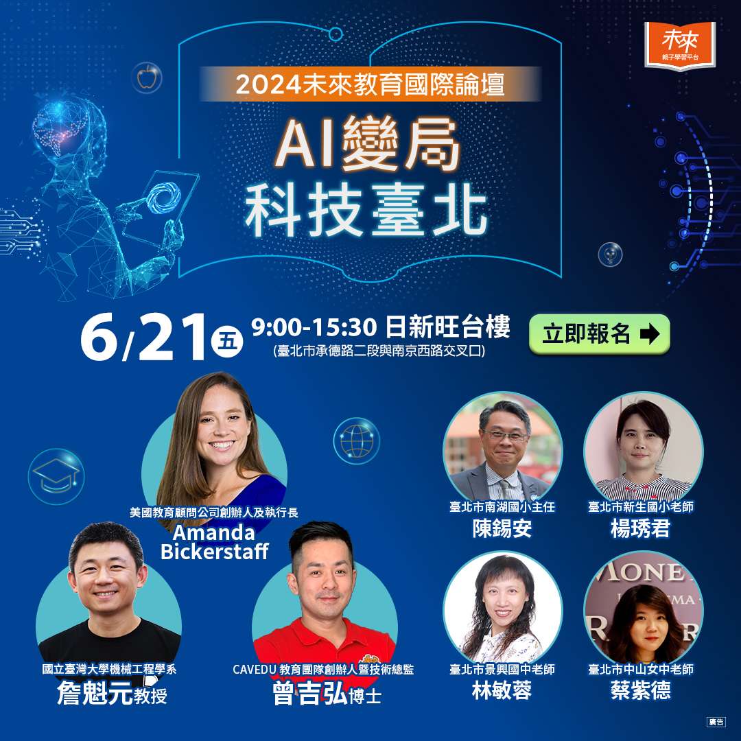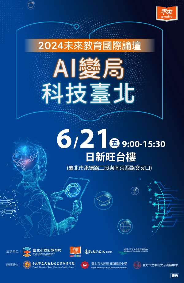轉知臺北市政府教育局辦理「2024未來教育國際論壇:AI變局科技臺北」,請本校教師及家長踴躍參與