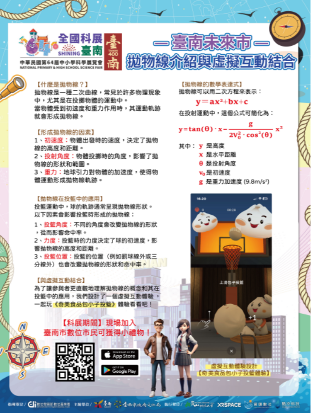 活動內容: 以拋物線科學原理介紹如何與虛擬互動結合,參與者到「臺南未來市」奇美食品幸福工廠中投擲虛擬籃