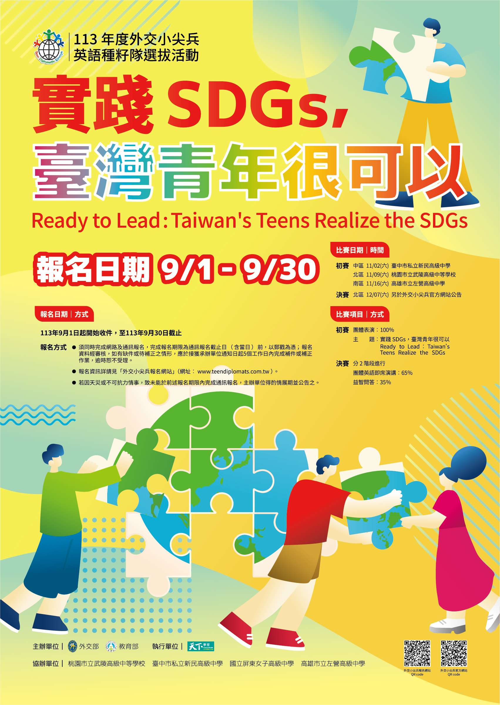 「外交小尖兵—英語種籽隊選拔活動」為外交部與教育部共同舉辦之英語團隊競賽(戲劇、演講、益智問答),旨在培育國際人才溝通能力、團隊精神及國際視野;本校同學透過自行組隊(四人一組,自覓校內指導老師一至二名),相互激盪與觀摩,探究不同文化和國際議題,了解台灣定位,接軌國際社會。