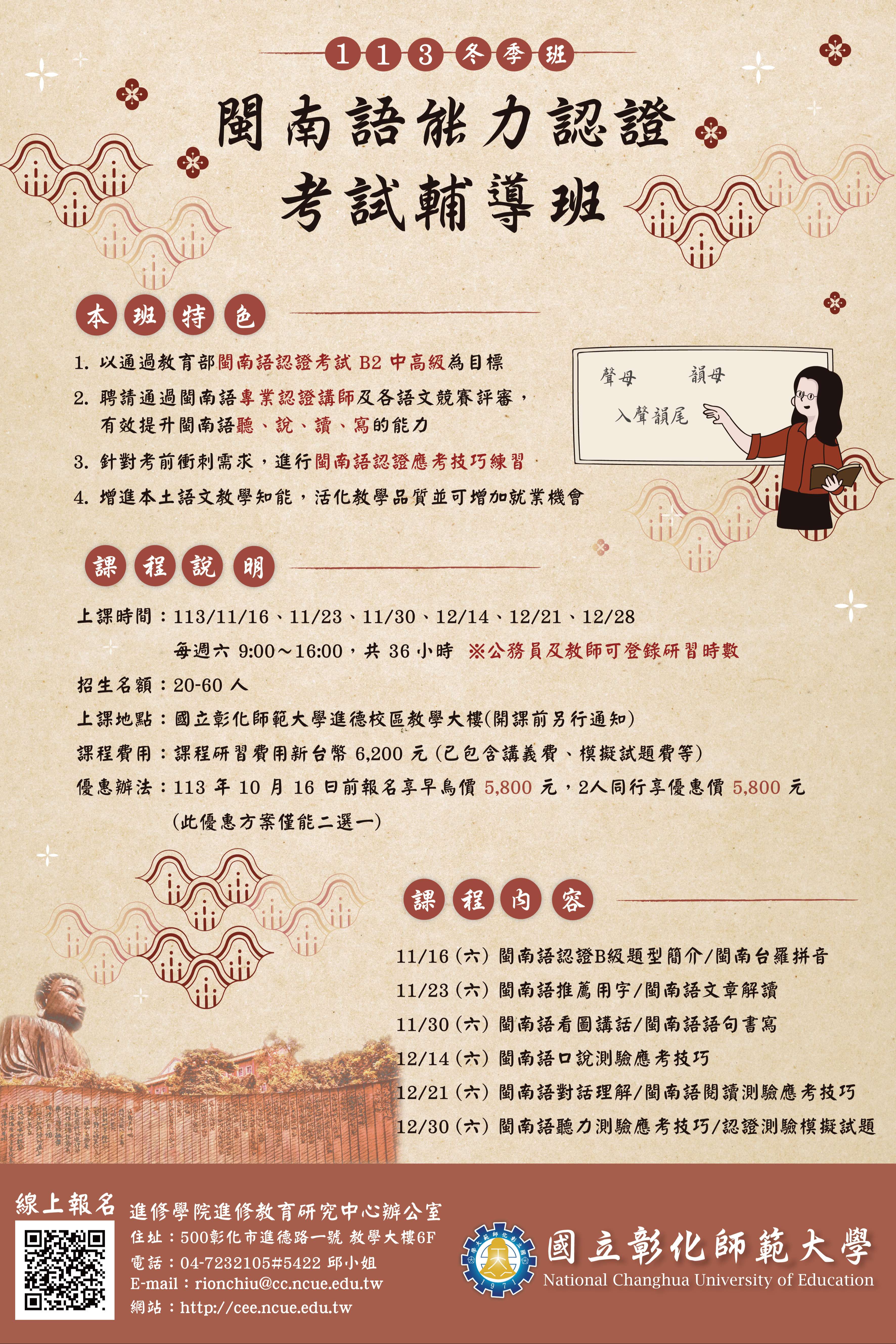 一、「113年閩南語能力認證考試輔導班(冬季班)」
