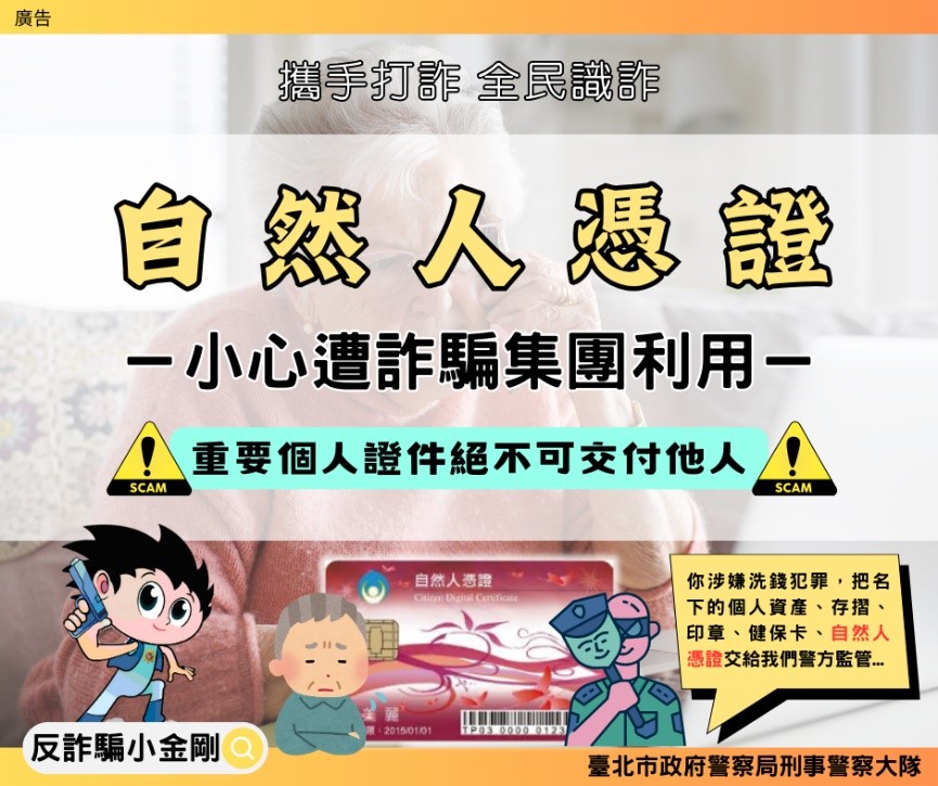 三、另因應近期發生詐騙集團利用交付自然人憑證為犯罪手法 之案例,結合上述高發詐騙手法,本月彙整反詐圖文素材3 張、影片4部,作為9月份宣導主軸,
