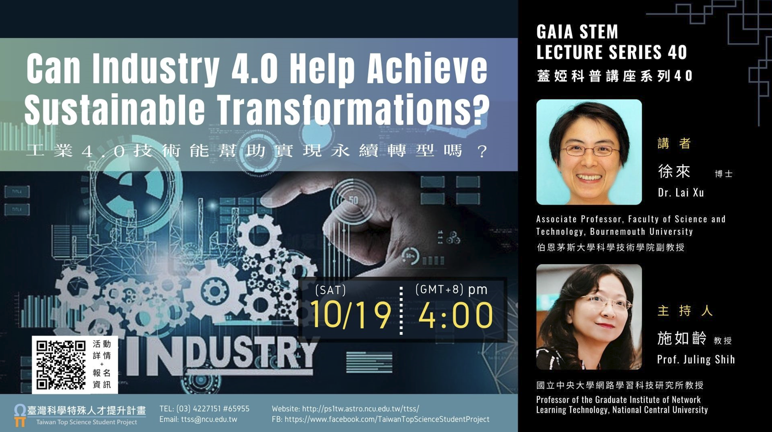 轉知國立中央大學辦理線上講座:《蓋婭科普講座系列40》— 「工業4.0技術能幫助實現永續轉型嗎?」活動資訊: