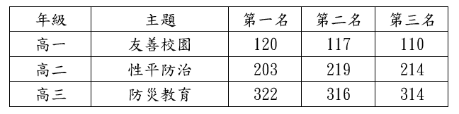 請獲獎班級派代表至訓育組簽領獎狀及禮劵!