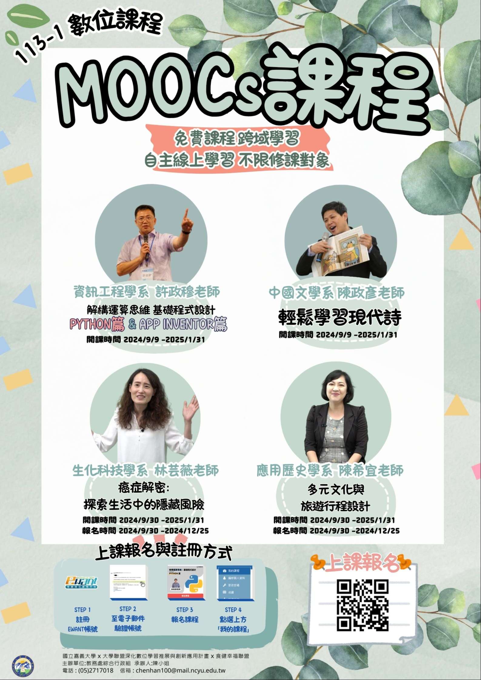 一、旨揭5門磨課師(MOOCs)線上課程如下: