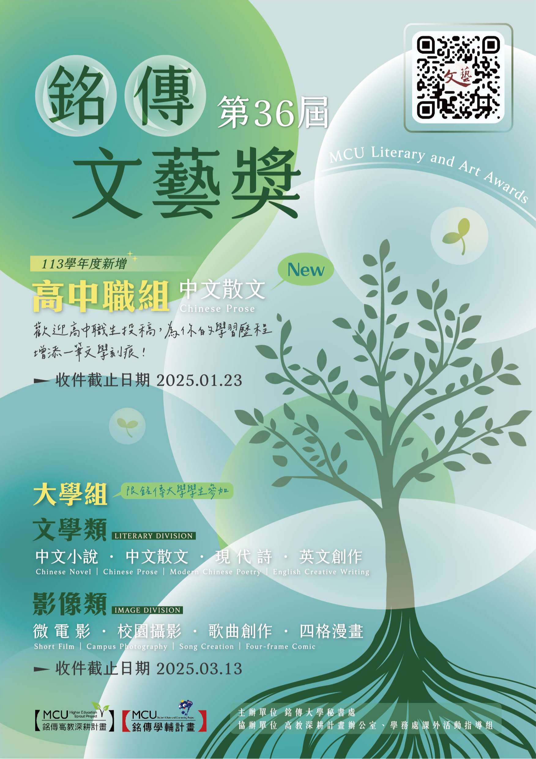銘傳大學 第36屆文藝獎高中職散文組徵文辦法及海報電子檔公告周知