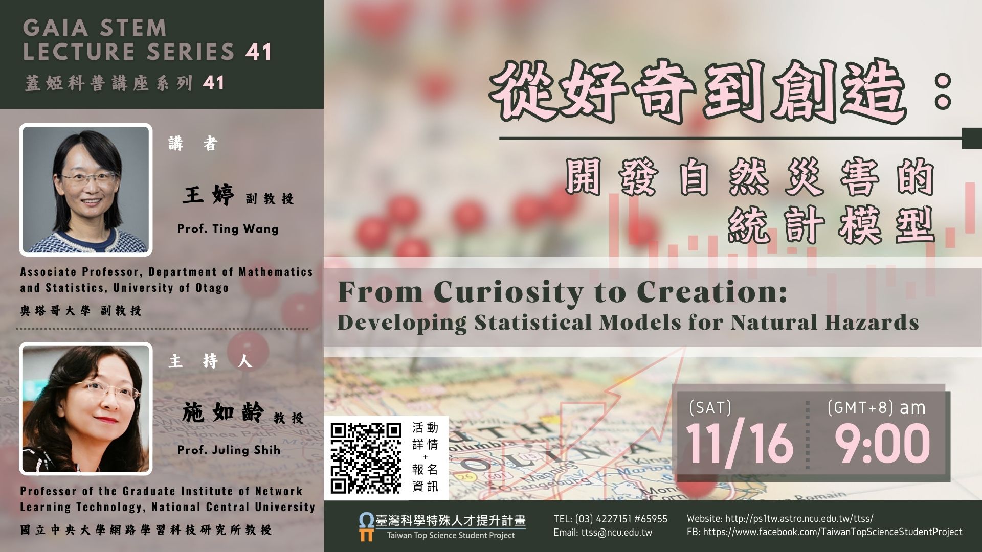 轉知國立中央大學《蓋婭科普講座系列 41》—— 「從好奇到創造:開發自然災害的統計模型」資訊: