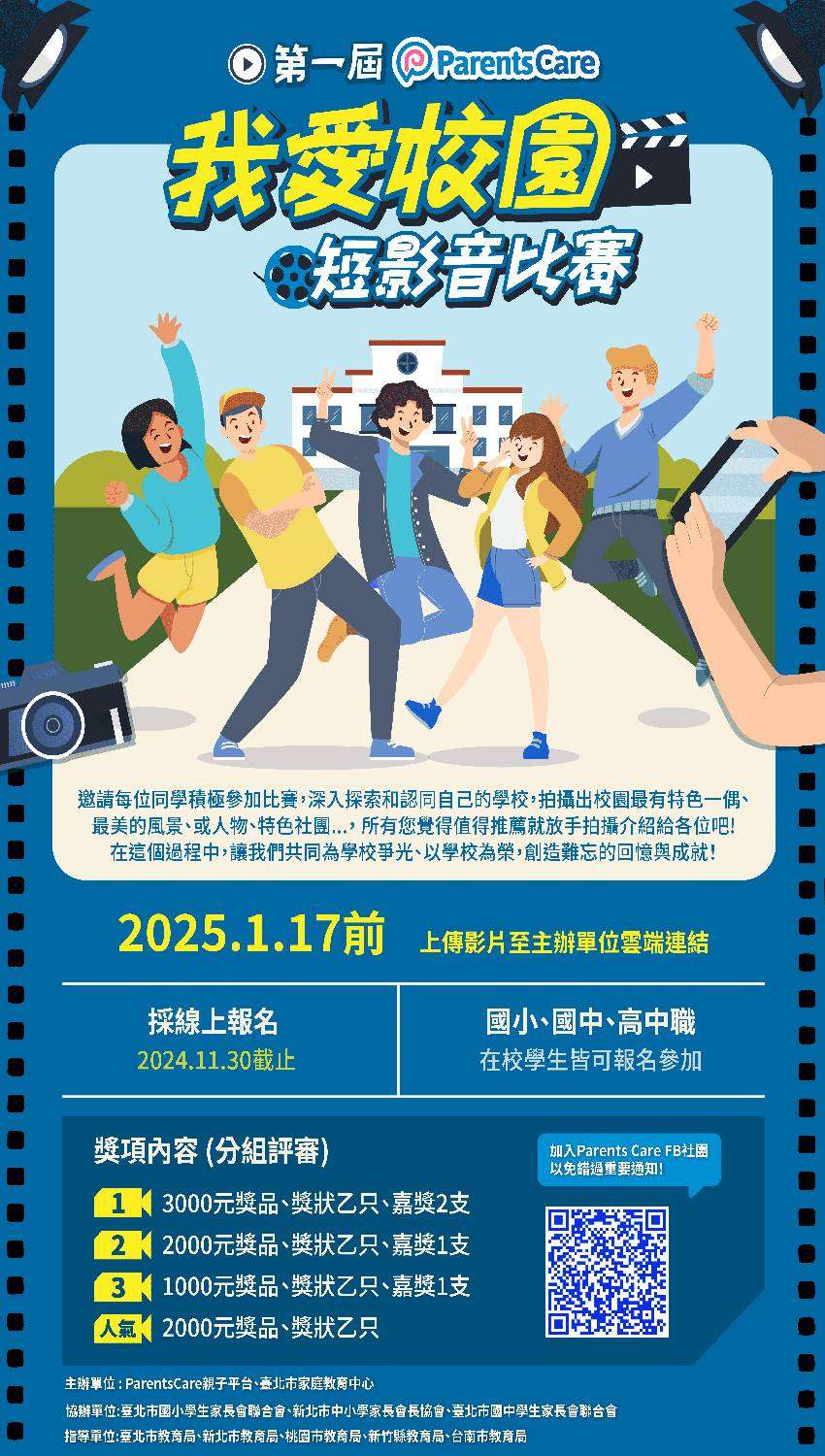 、比賽報名網址https://www.beclass.com /rid=2748c55634801c34e9dd,活動詳情可至ParentsCare 家長大小事FB粉絲專頁(https://www.facebook.com /groups/434955752481737/)查詢。