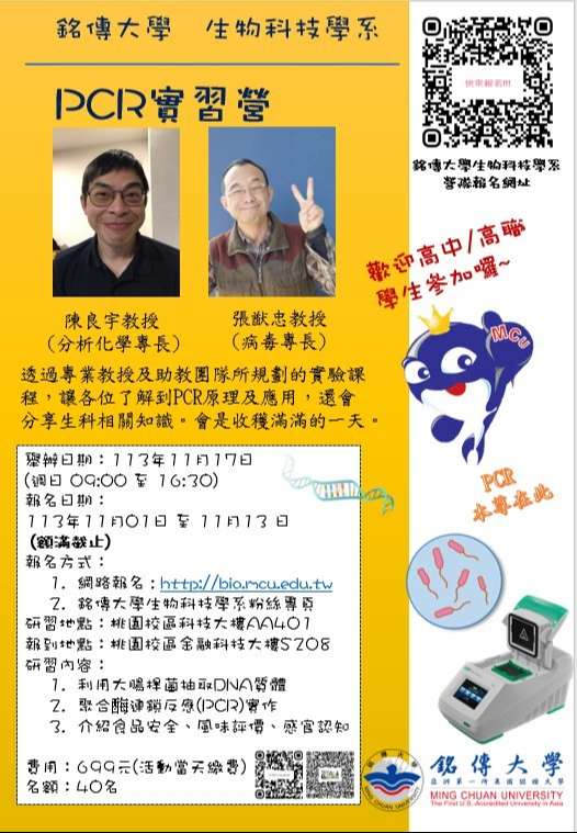 1.臉書:銘傳大學生物科技學系粉絲專頁
