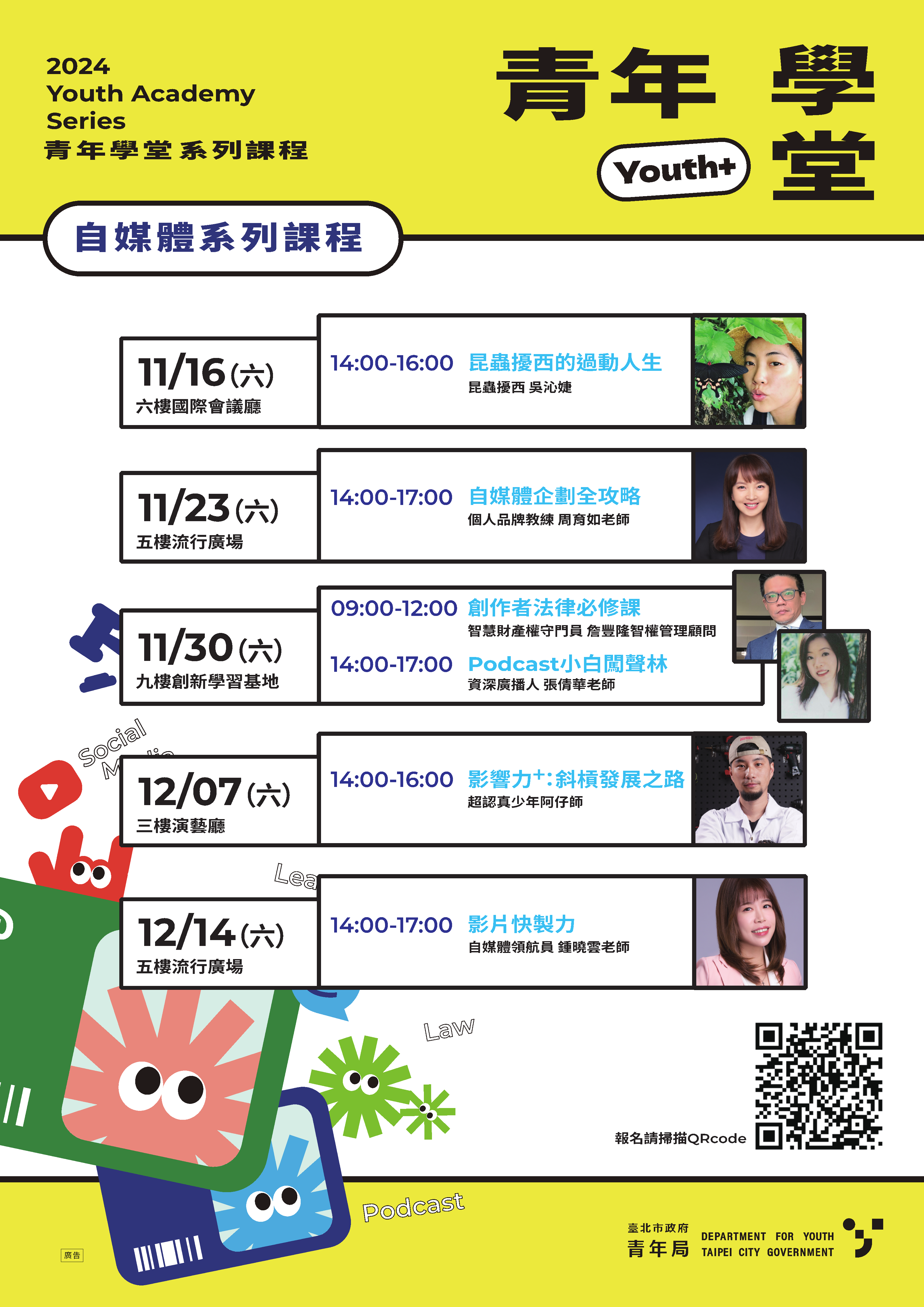 轉知臺北市政府青年局辦理「青年學堂-自媒體」系列課程: