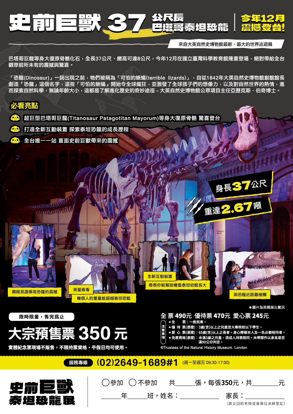 轉知聯合數位文創股份有限公司舉辦「史前巨獸泰坦恐龍展」資訊: